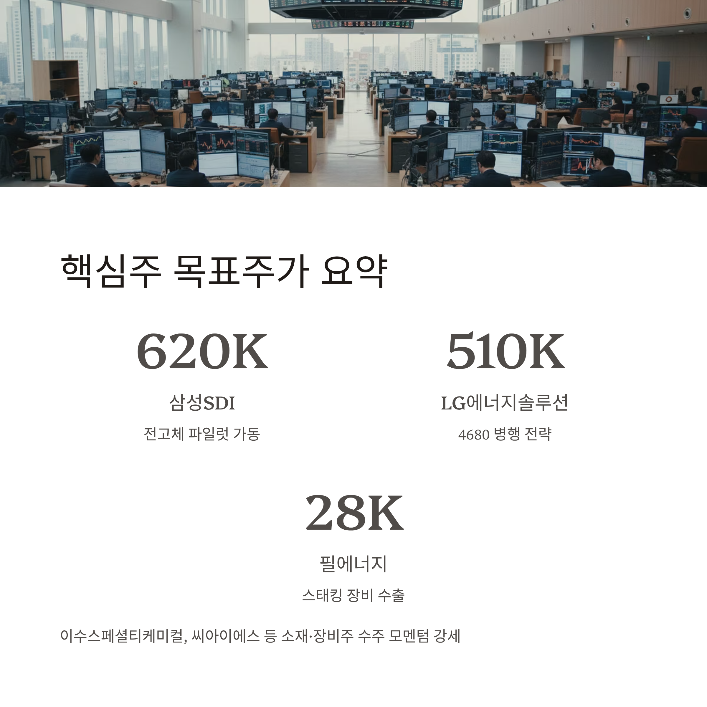 이 글에서는 전고체 배터리 핵심 플레이어인 대형 셀 업체부터, 소재·장비주까지 주요 종목들의 목표주가와 재무지표, 그리고 2026년 투자전략까지 한눈에 정리해 드립니다.