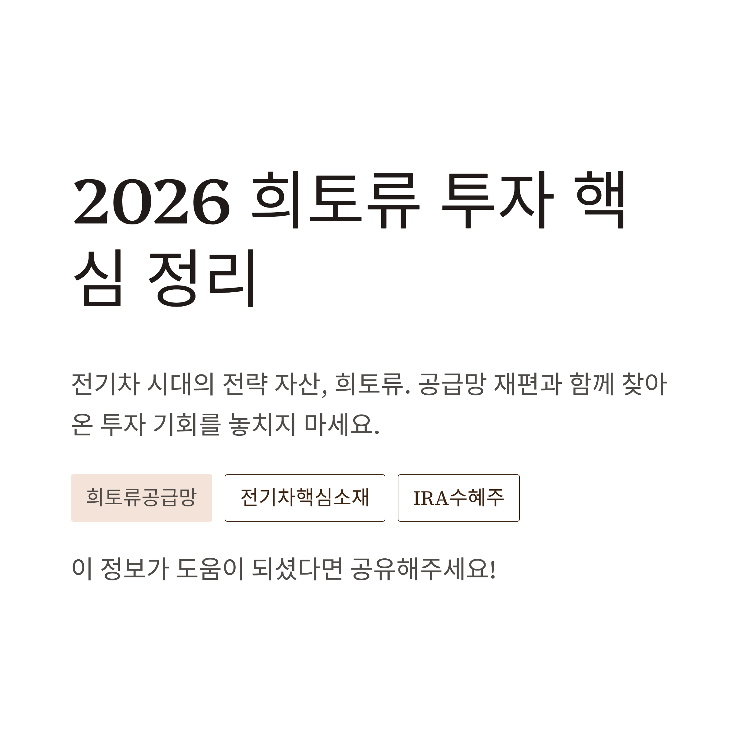 전기차 핵심 소재 희토류 관련주, 2026년 공급망 개편과 투자 전략