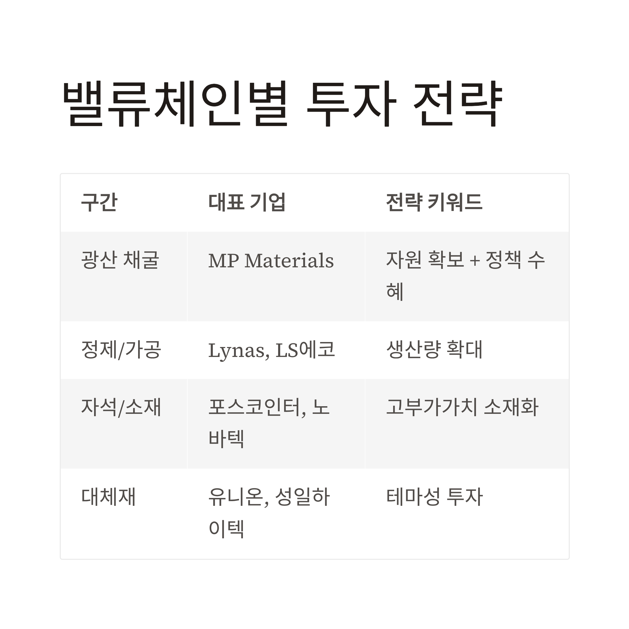 | 정제/가공 | Lynas, LS에코에너지 | 생산량 확대 + 공급 안정화 |