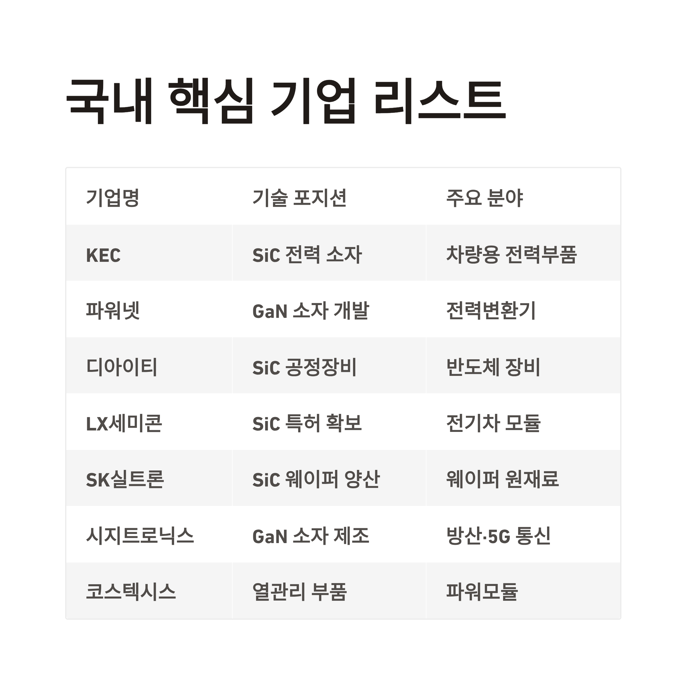 국내 SiC / GaN 핵심 기업 리스트 및 기술 포지션