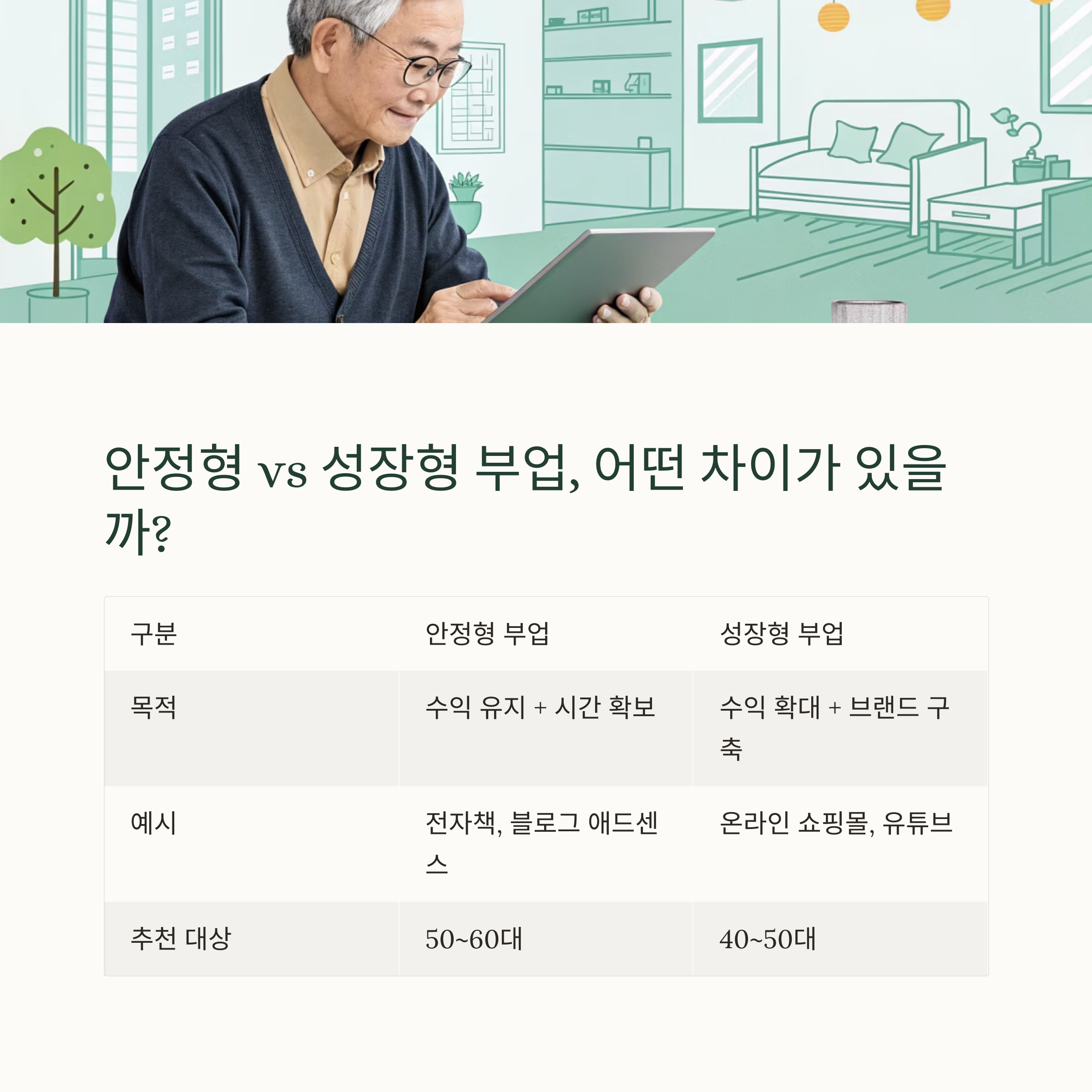 ⚖️ 안정형 vs 성장형 부업, 장단점 비교표