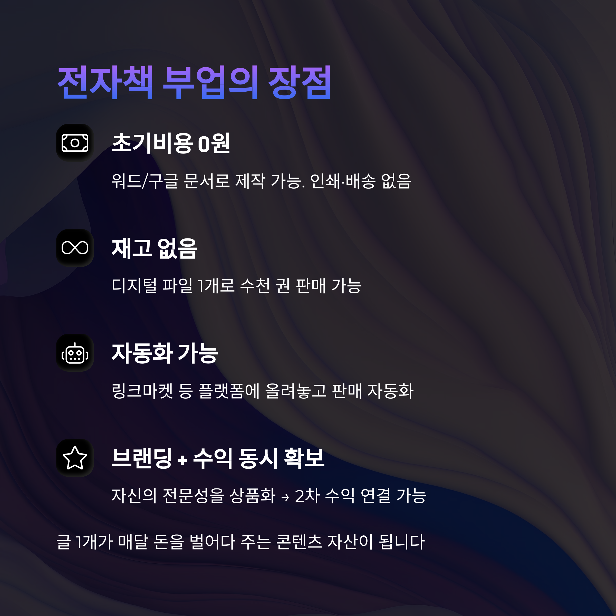 전자책 부업은 가장 현실적이고 지속 가능한 선택입니다.