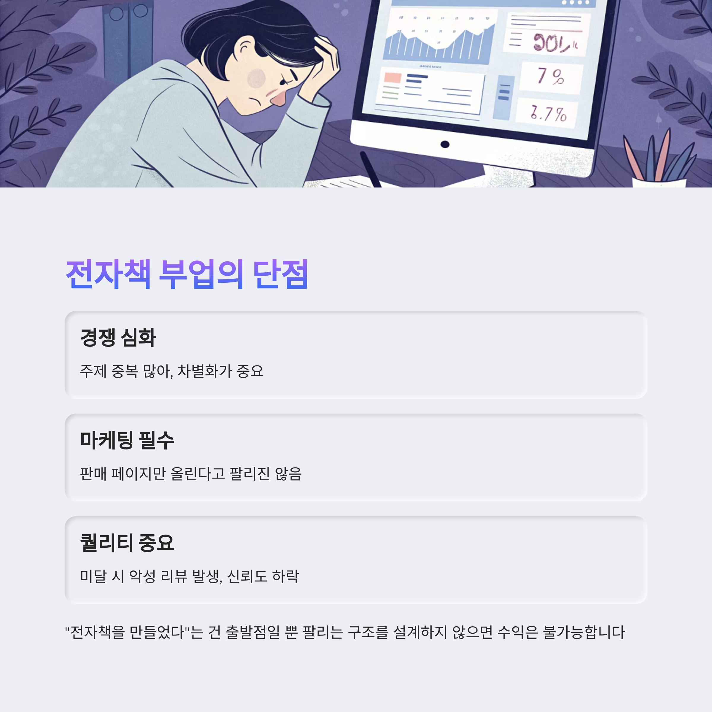 ⚠️ 전자책 부업의 단점 – 아무나 성공하는 건 아니다