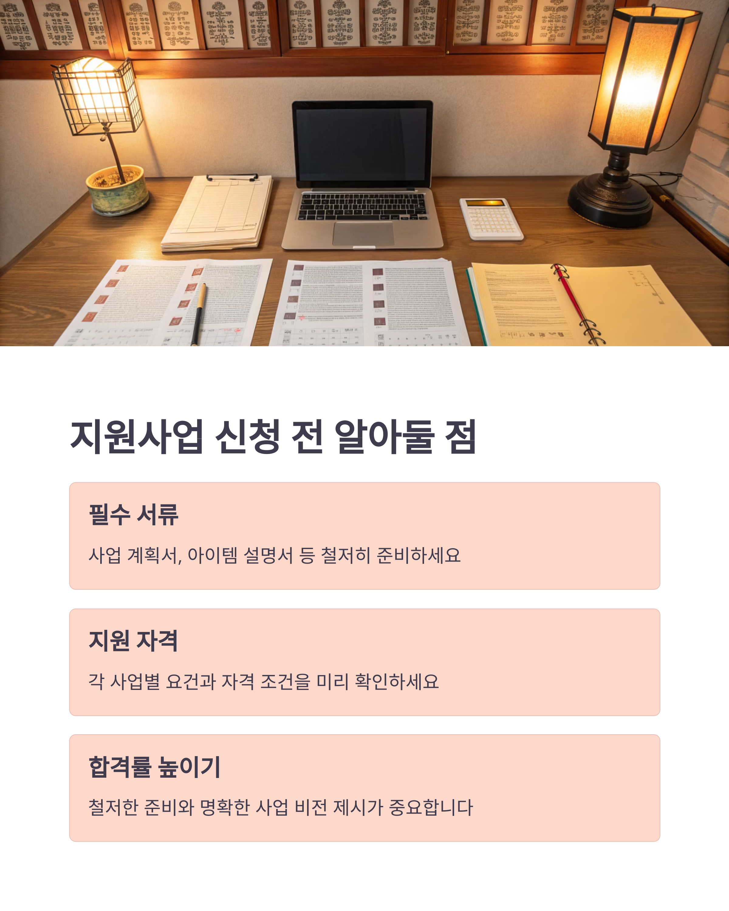 | 중소기업청, 벤처지원 프로그램 | 신청 조건 파악, 서류 준비 | 시장 조사, 경쟁 분석 |