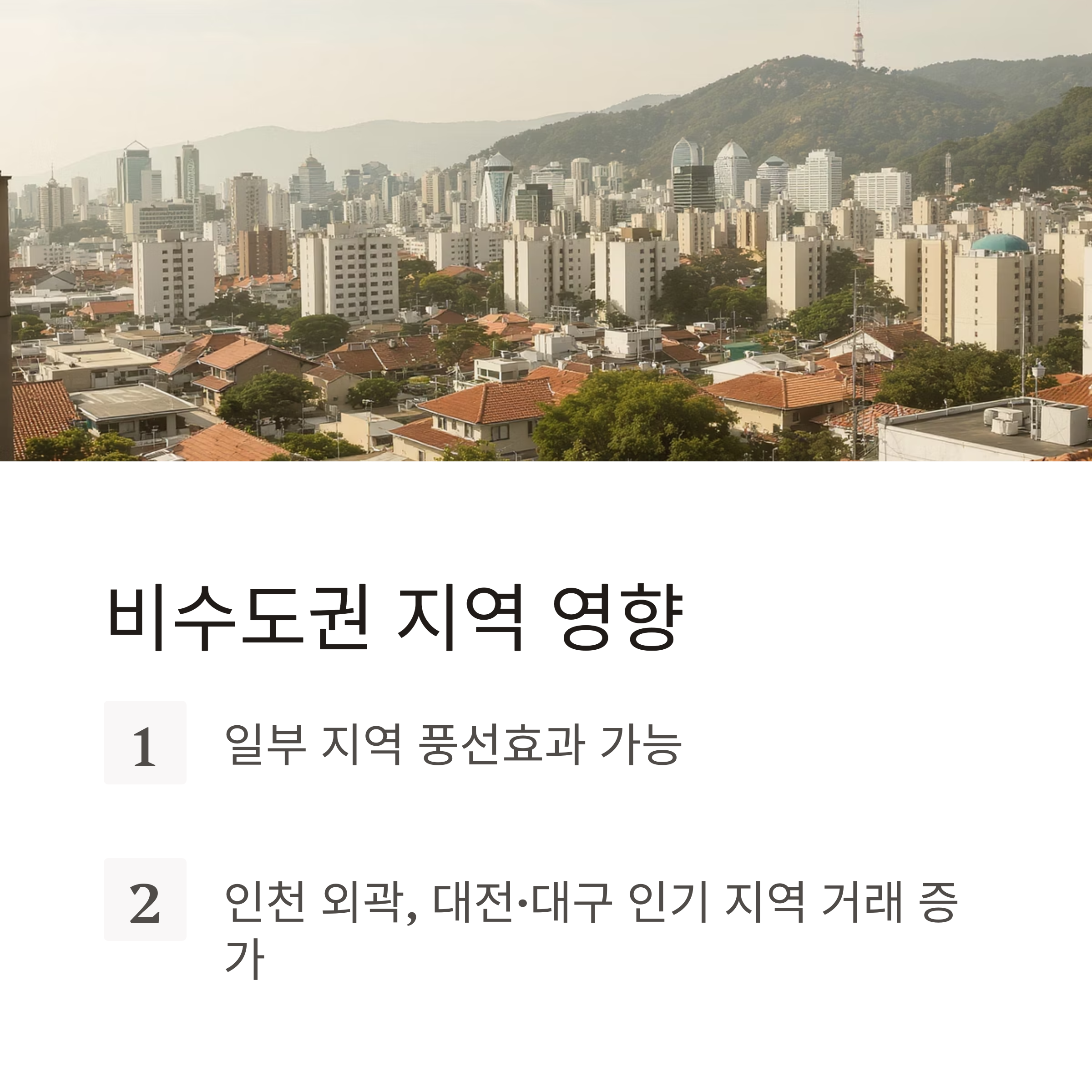 | 지방 광역시 | 소폭 상승 가능성 | 자금 이동 효과, 풍선효과 기대감 |