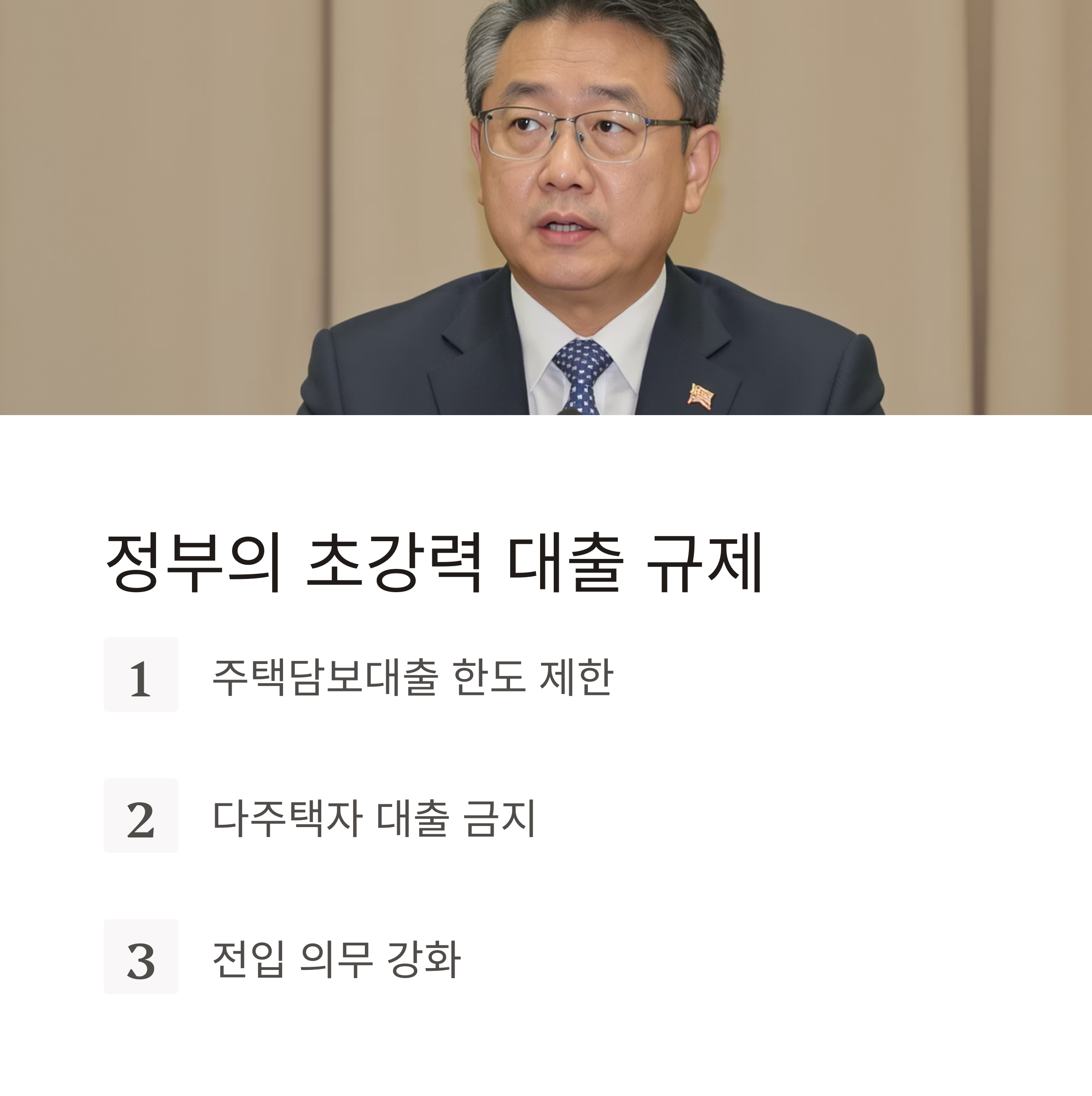주택담보대출 한도 제한, 다주택자 대출 금지, 전입 의무 강화 등
