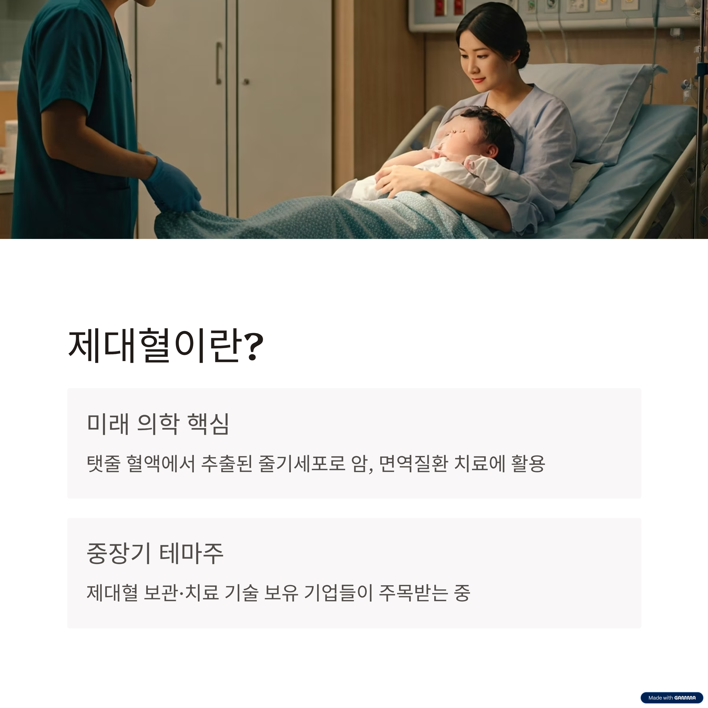 • 자가보관 + 병원 협업 + 글로벌 제대혈 수출 시장까지 다각화될 수 있음