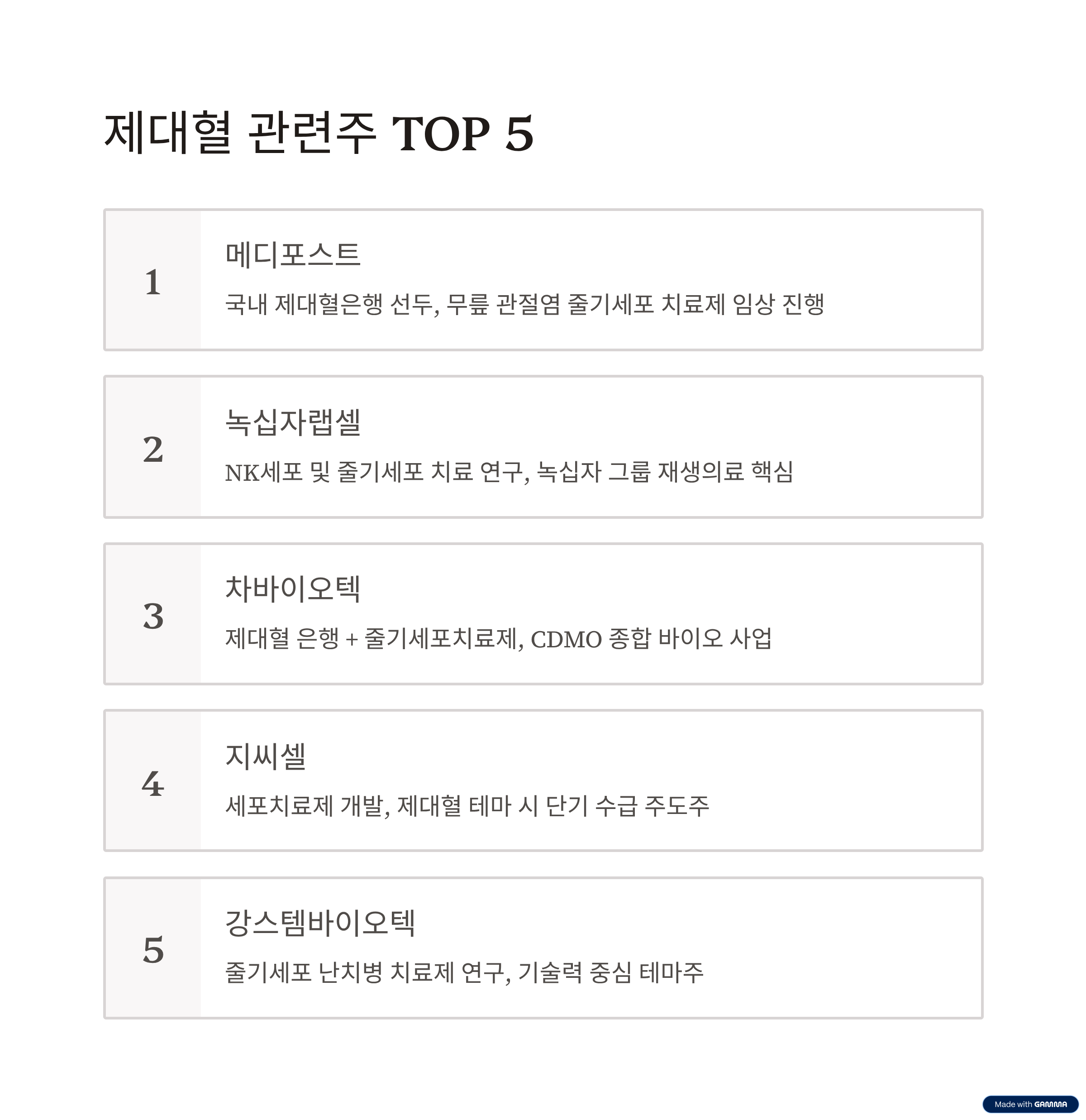 제대혈 관련주 TOP5 종목 분석