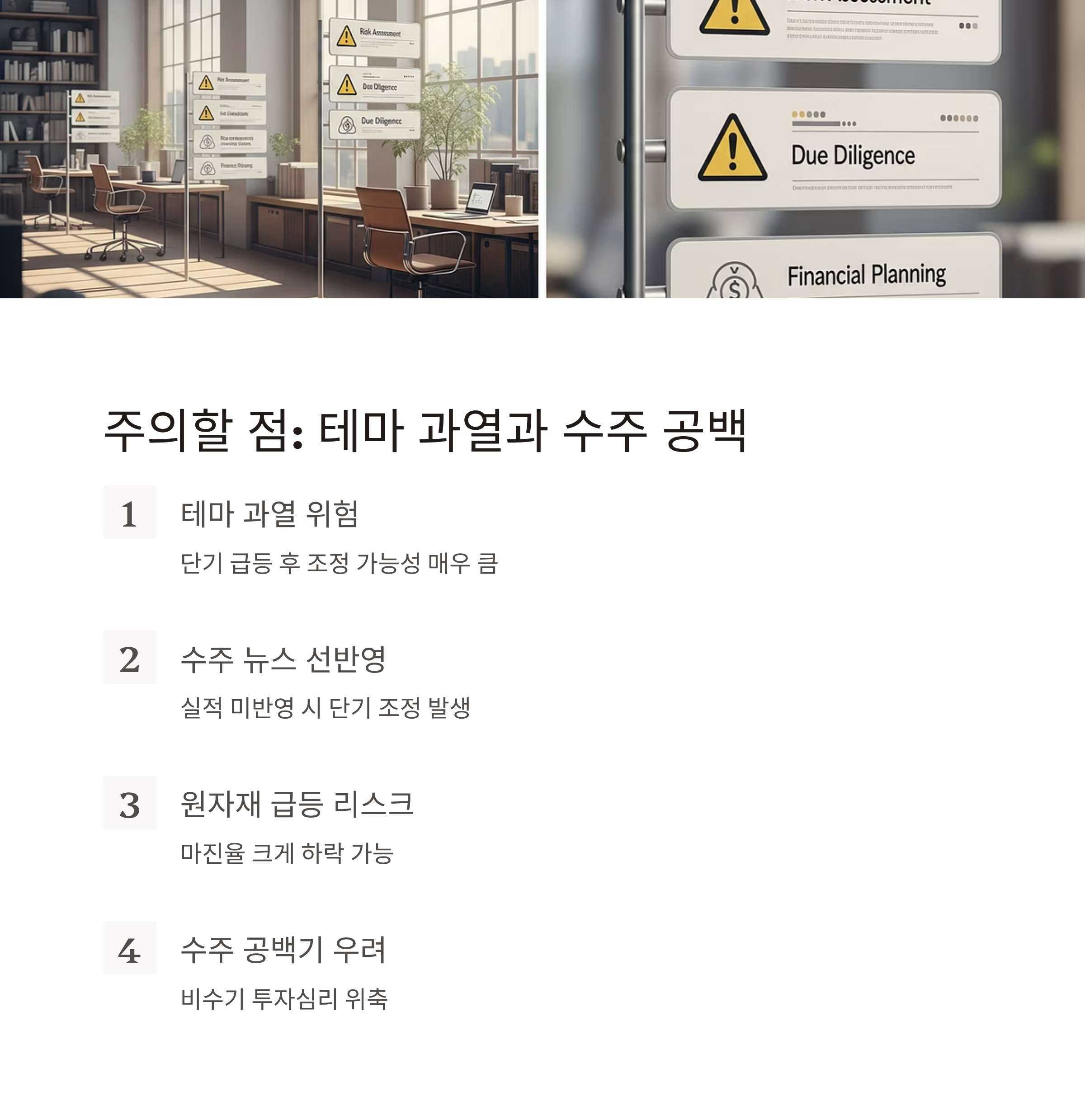 주의할 점은? 테마 과열과 수주 공백 구간