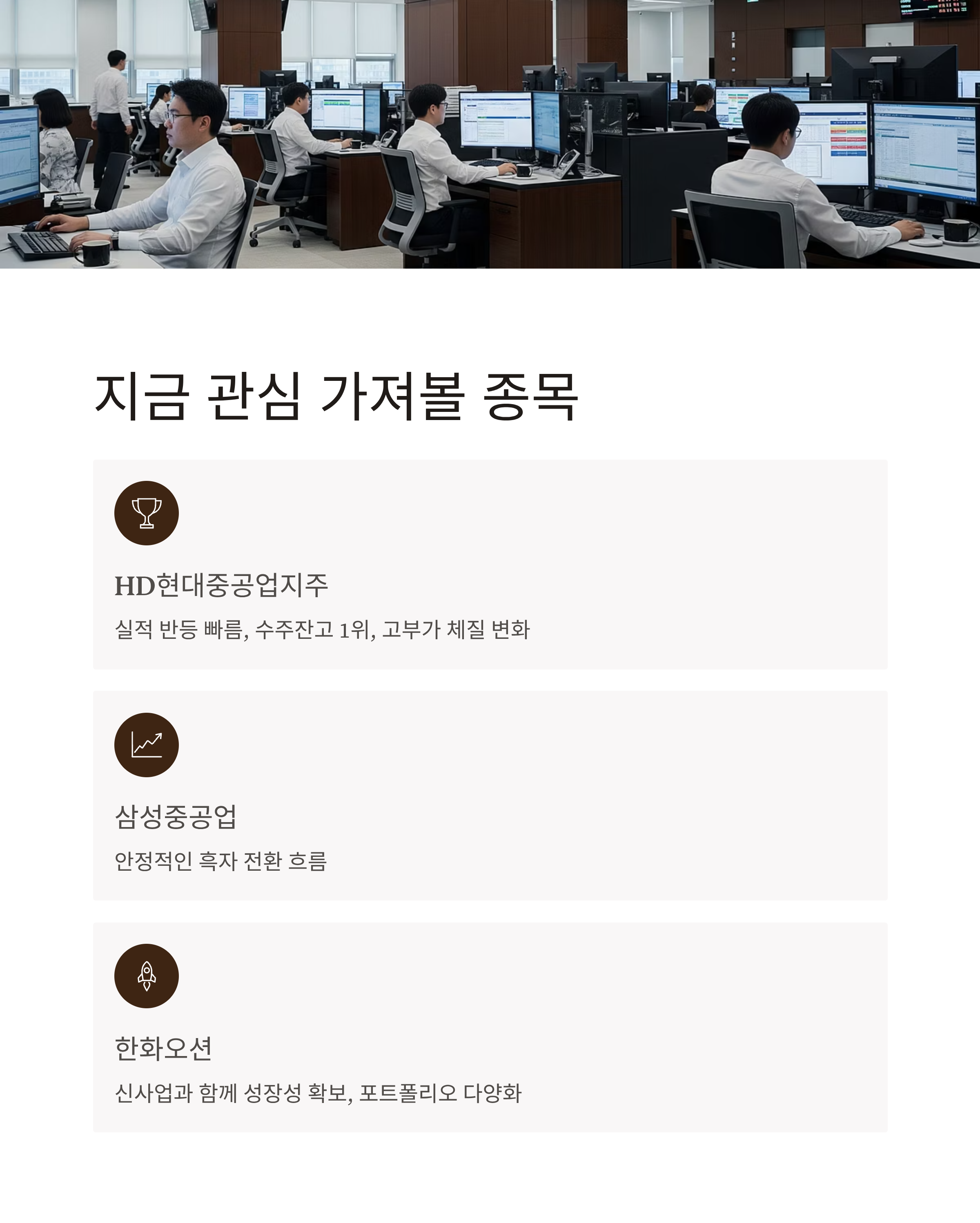 또는 한화오션처럼 신사업과 함께 성장성을 확보한 종목도 포트폴리오 다양화 측면에서 함께 고려할 수 있습니다.