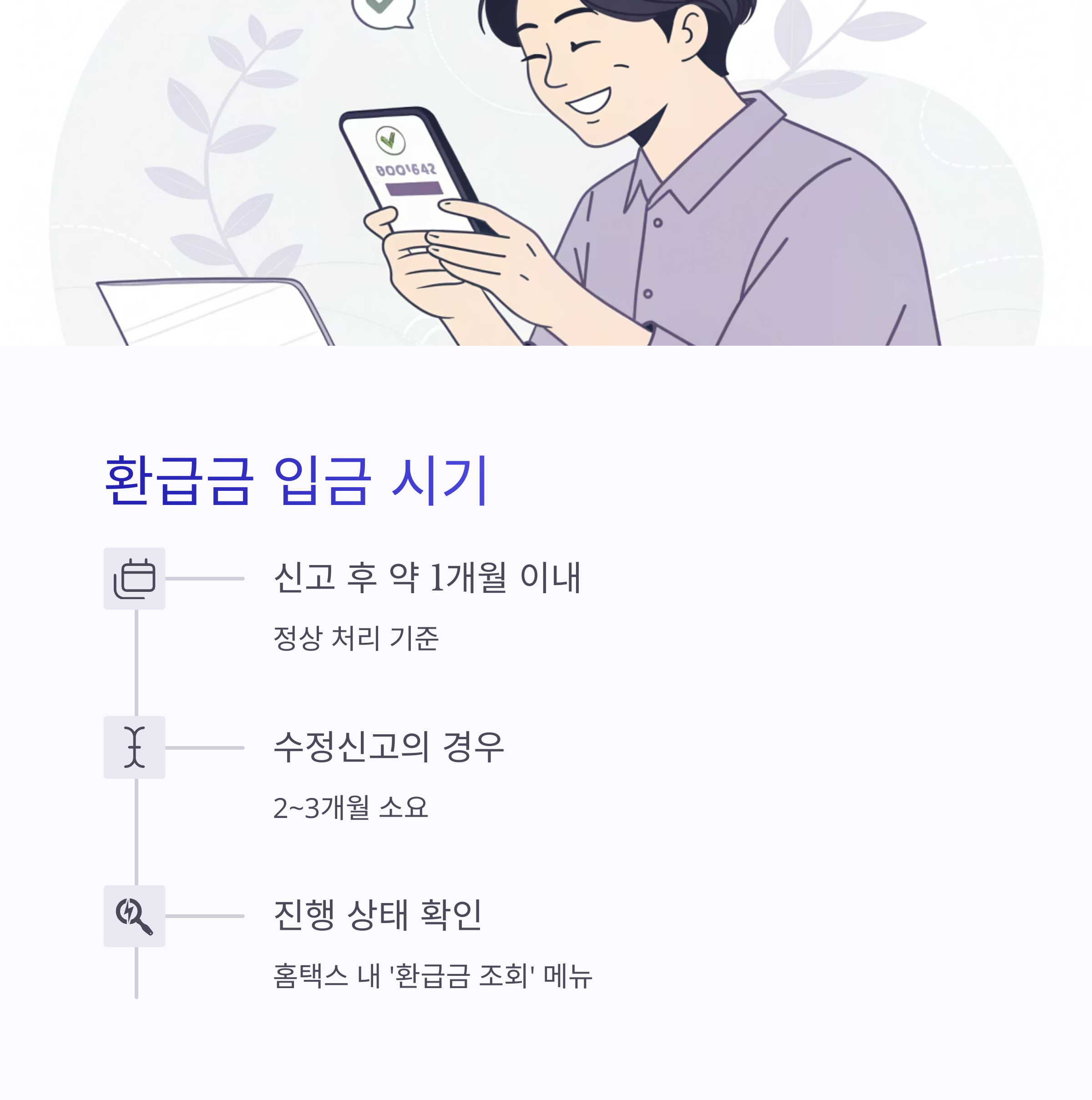 - 홈택스 내 ‘환급금 조회’ 메뉴에서 진행 상태 확인 가능