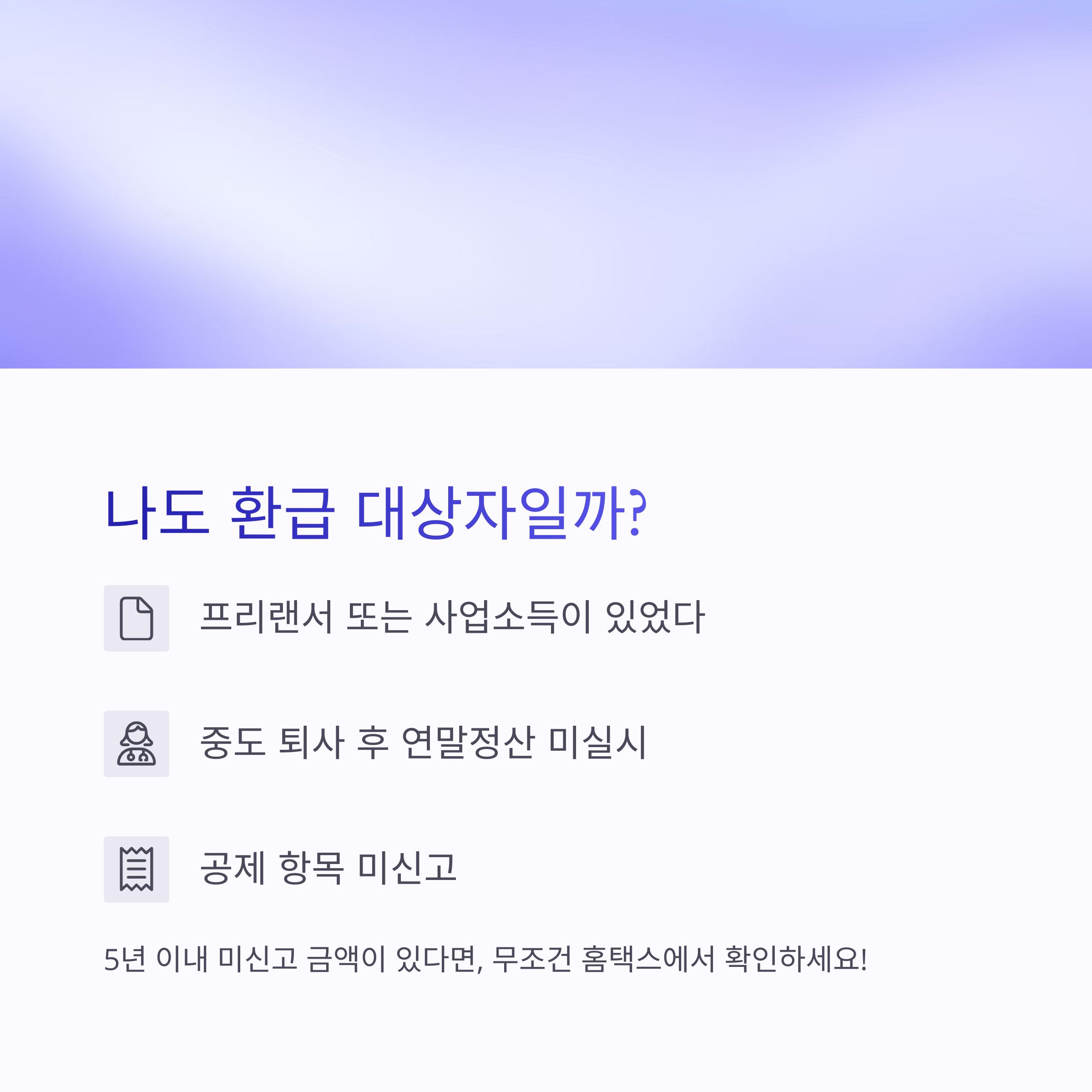 아래 항목 중 하나라도 해당된다면, 당신도 원클릭 환급 대상자일 수 있습니다.