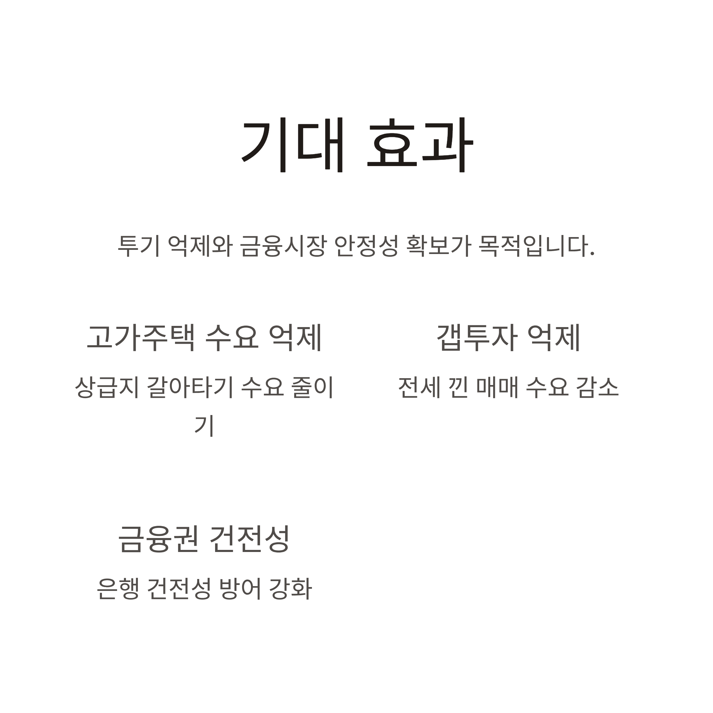 이번 대책의 목적은 분명합니다. “투기 억제와 금융시장 안정성 확보”입니다. 구체적으로 어떤 효과가 기대될 수 있을까요?