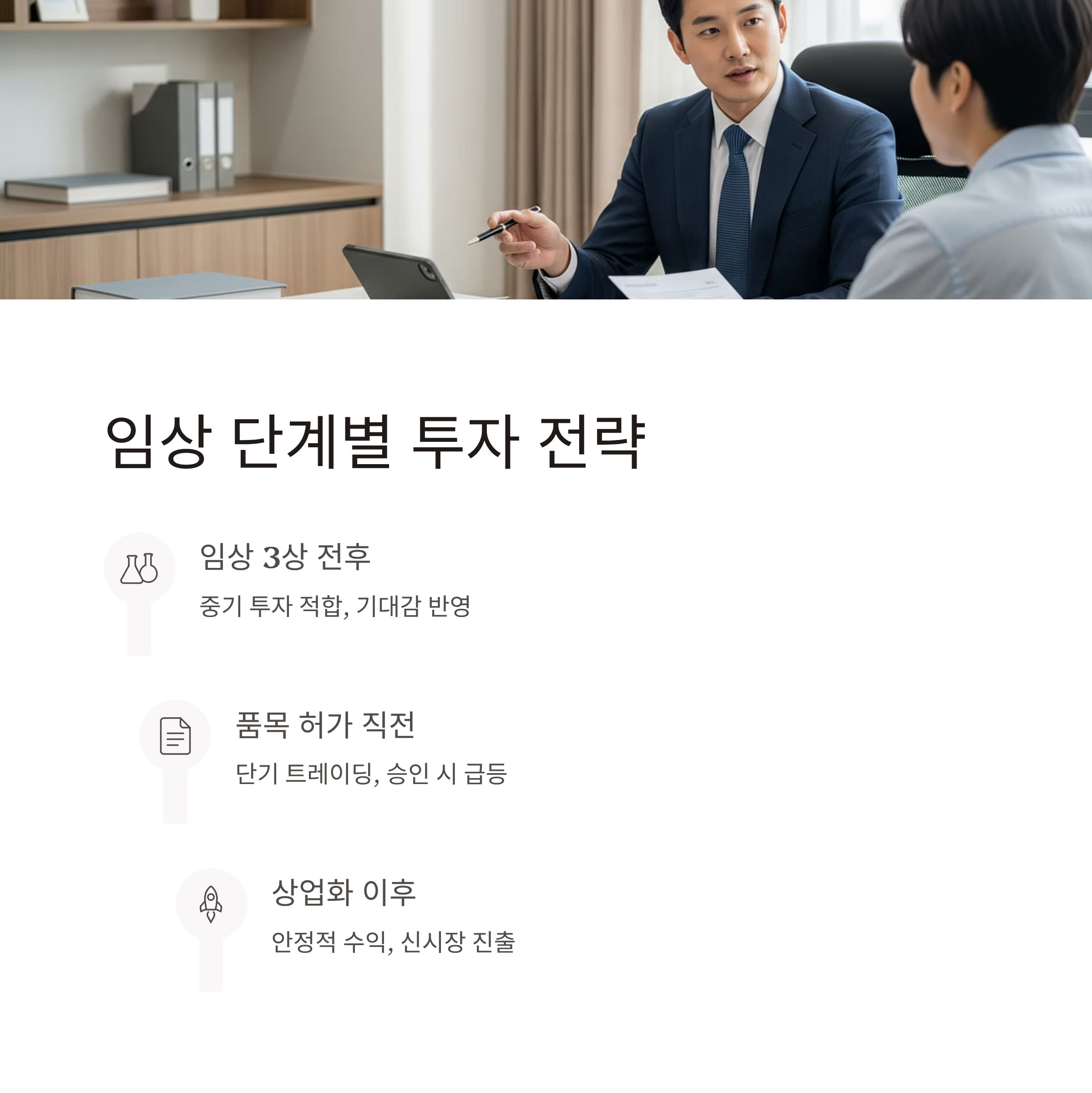 | 임상 3상 전후 | 중기 투자 적합 | 기대감 → 결과 발표 후 방향성 결정 |