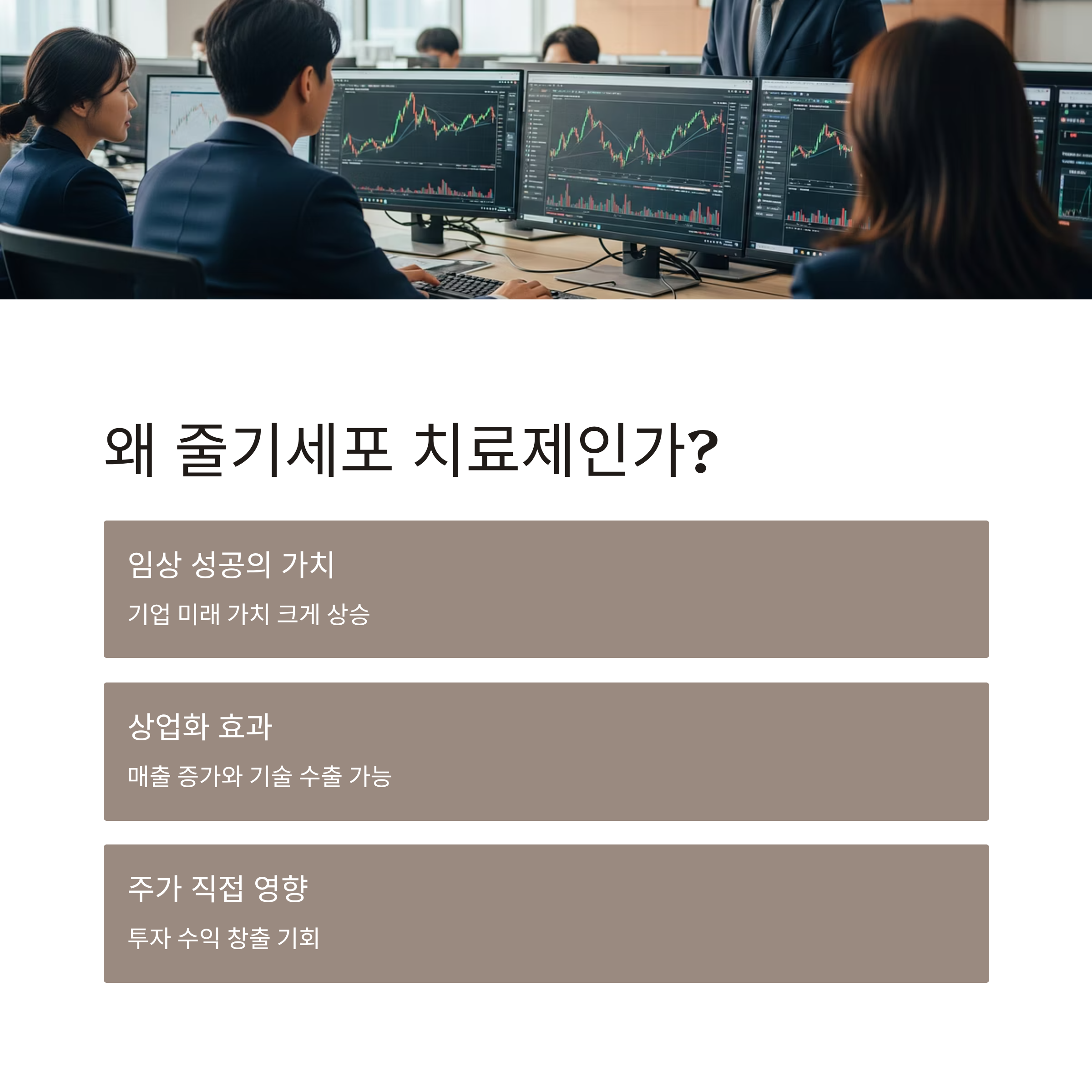 줄기세포 치료제는 임상 성공 그 자체만으로도 기업의 미래 가치를 크게 끌어올릴 수 있습니다. 상업화에 이르면 매출 증가와 기술 수출 가능성까지 더해져 주가에 직접적인 영향을 미치기 때문입니다. 이번 글에서는 임상 완료 또는 상업화를 앞둔 국내 주요 줄기세포 기업들의 임상 현황과 주가 전망을 집중 분석해봅니다. 증권사 리포트와 투자자 추정치도 함께 참고하여 투자 전략까지 정리했습니다.
