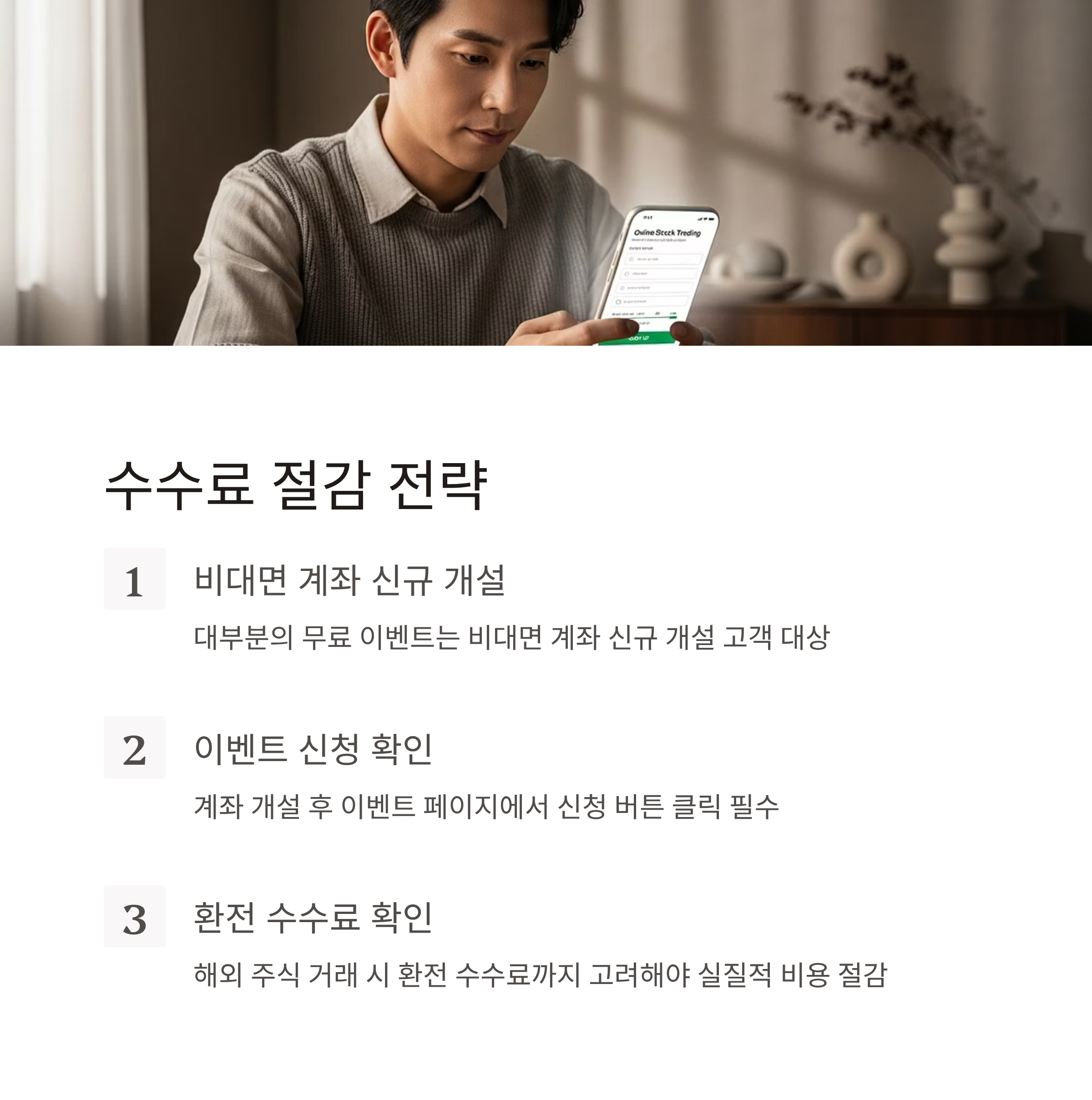 수수료 무료 이벤트는 대부분 비대면 계좌 신규 대상입니다. - 이벤트 신청 여부 확인