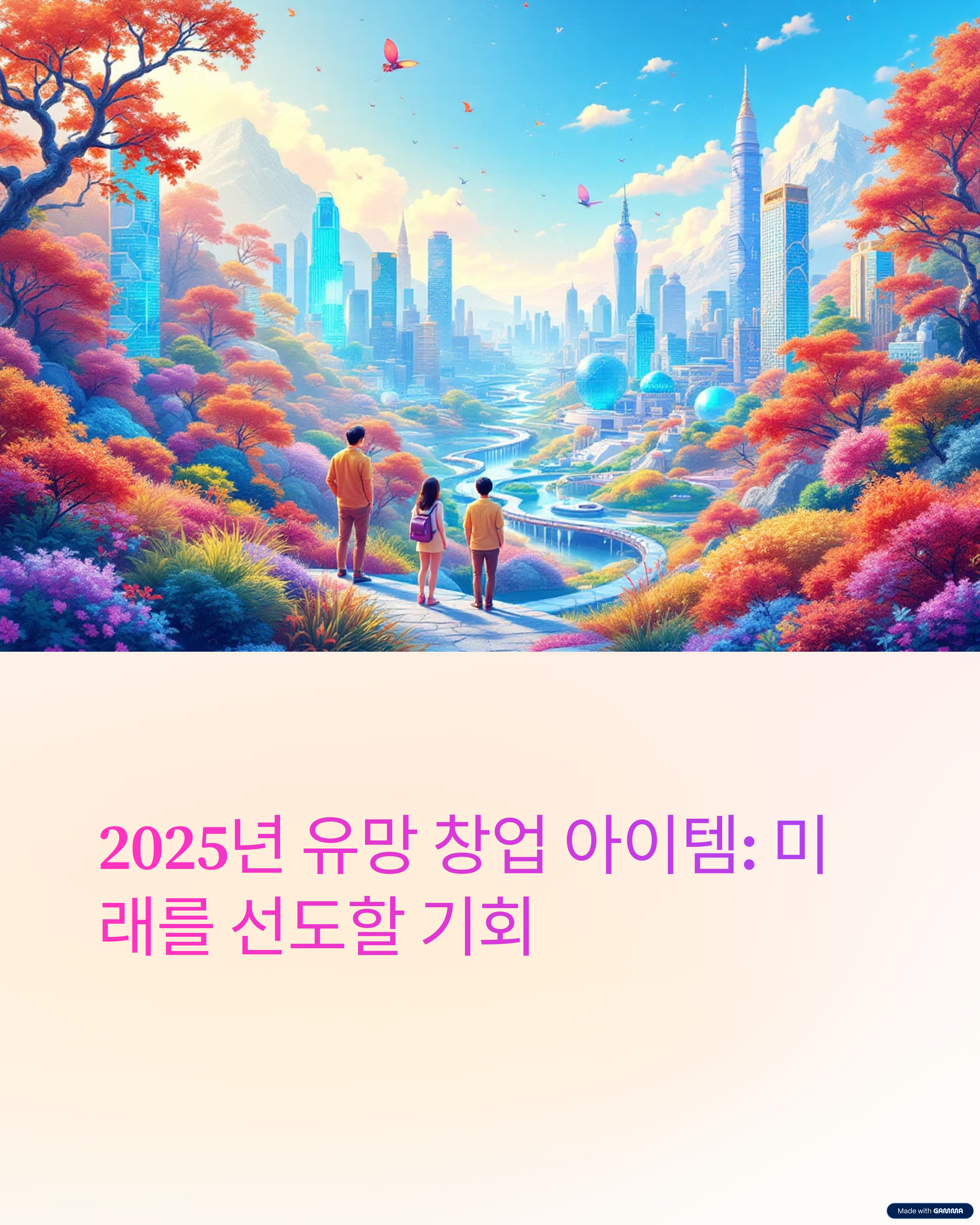 | 창업 아이템 | 2025년 새로운 비즈니스 기회를 창출하는 분야 |