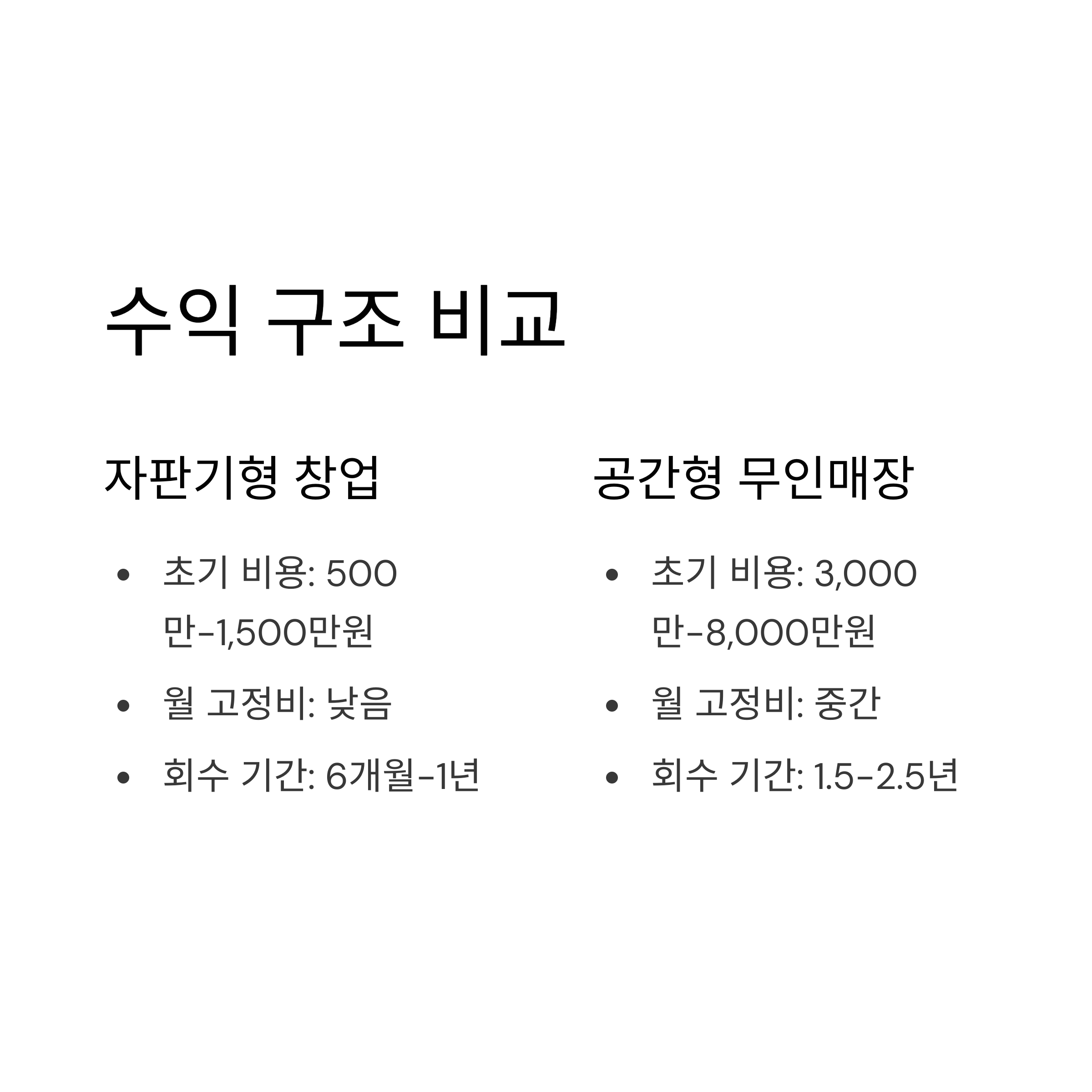 📊 수익 구조 분석 – 무인 자판기형 vs 공간형 비교표