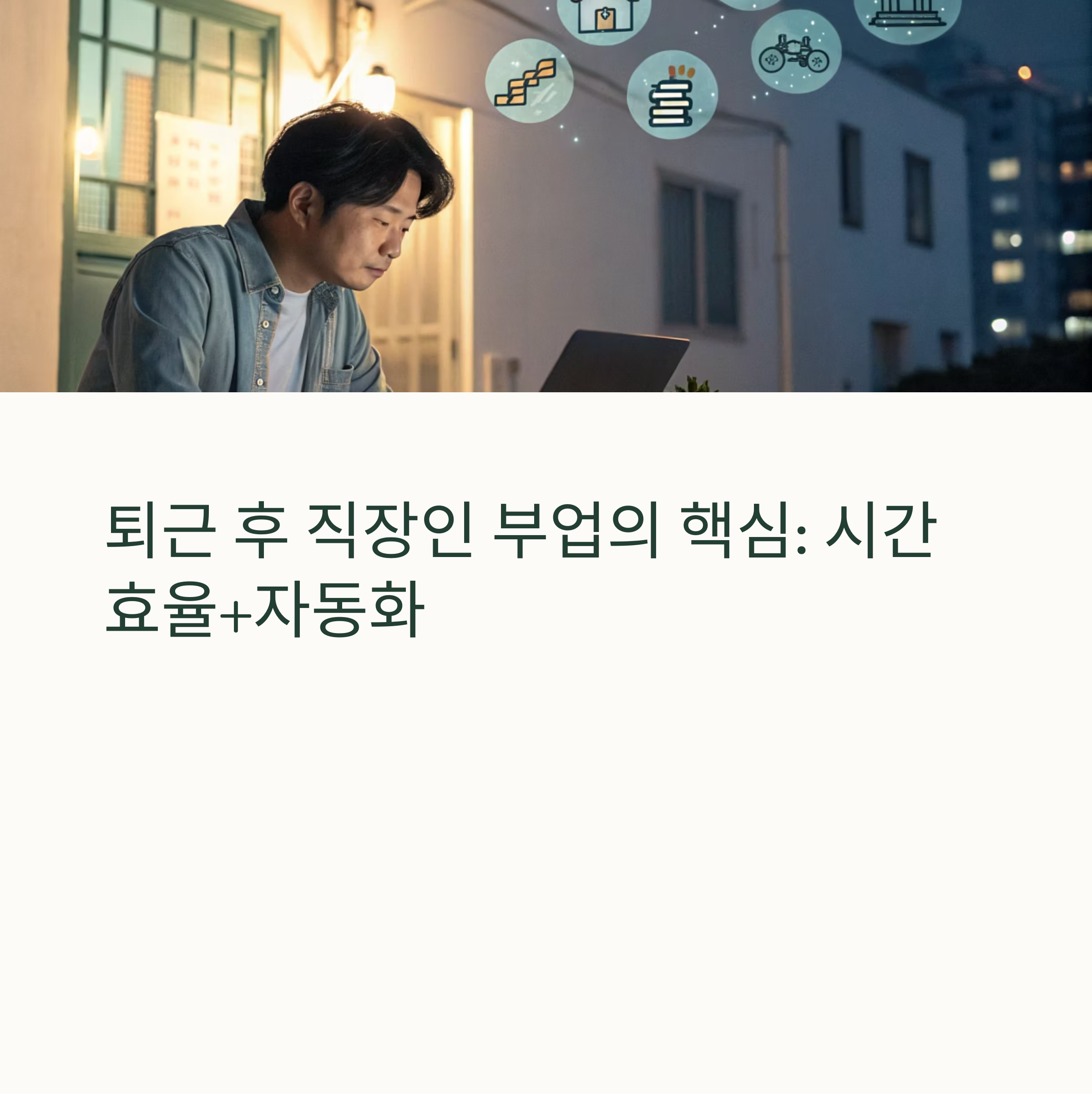 직장인이 부업을 고를 때 가장 중요한 기준은 시간 효율입니다. 본업을 유지하면서 수익을 만들려면, 적은 시간으로 꾸준히 운영 가능한 아이템이 유리합니다. 예를 들어 블로그 운영, 전자책 판매, 온라인 강의 제작은 주말 또는 평일 퇴근 후 1~2시간 투자로 시작할 수 있는 대표적인 부업입니다. 특히 콘텐츠 중심의 부업은 한번 만들면 자동화가 가능해, 직장인에게 매우 적합합니다.