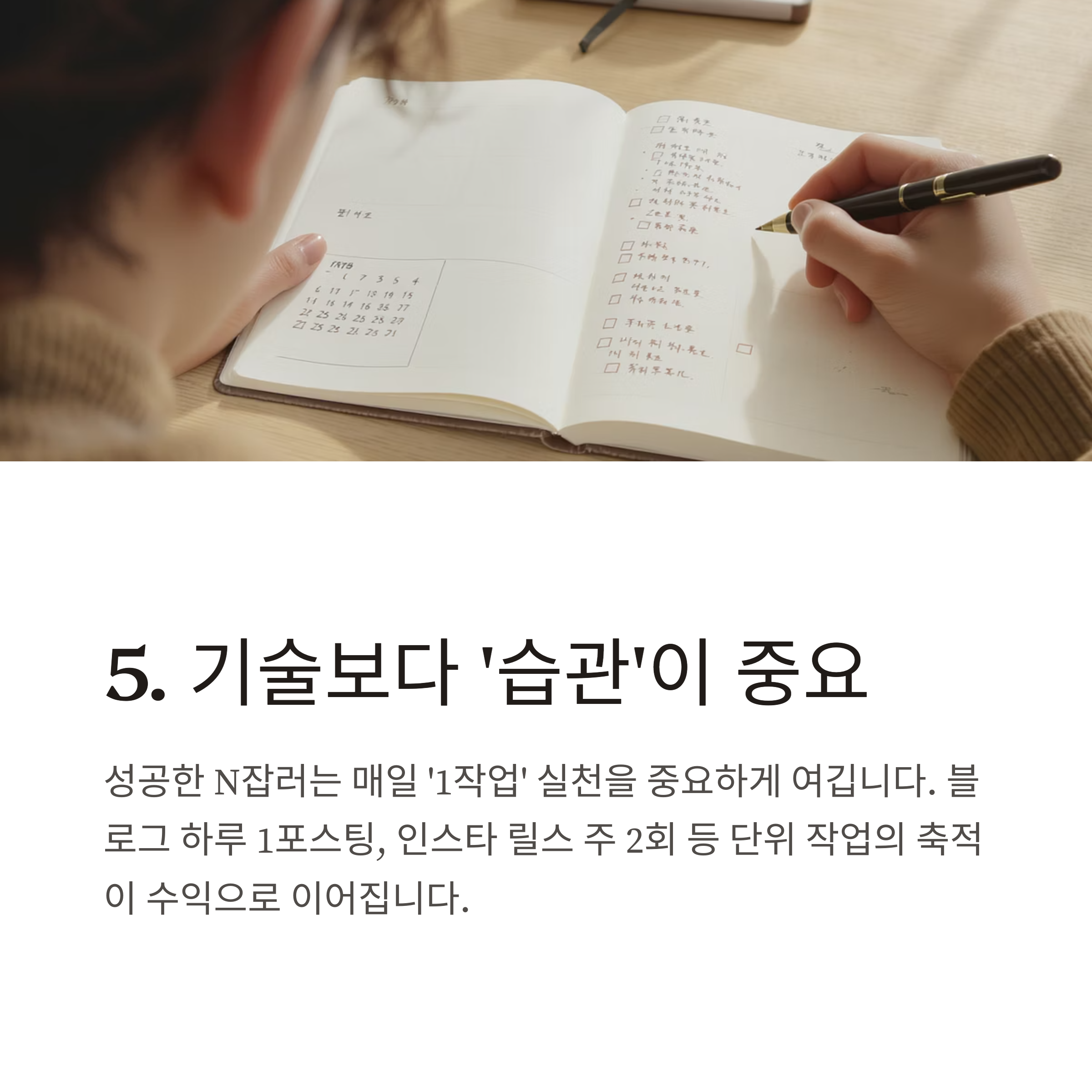 실제 성공한 N잡러들은 SNS나 블로그에서 “매일 밤 10시~12시 콘텐츠 작업”을