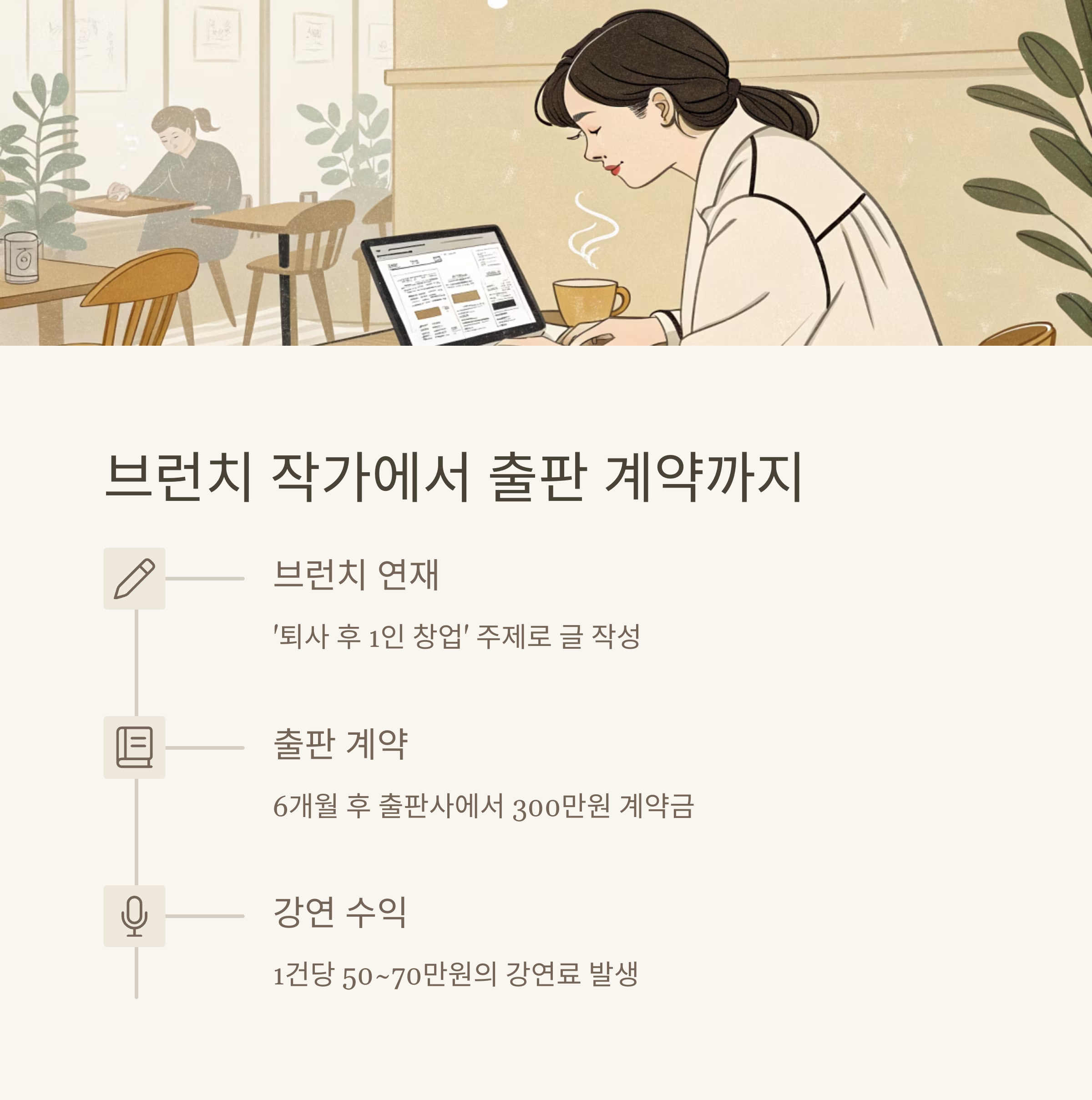 📖 사례 4 – 브런치 작가 활동 → 출판 계약 + 강연 수익