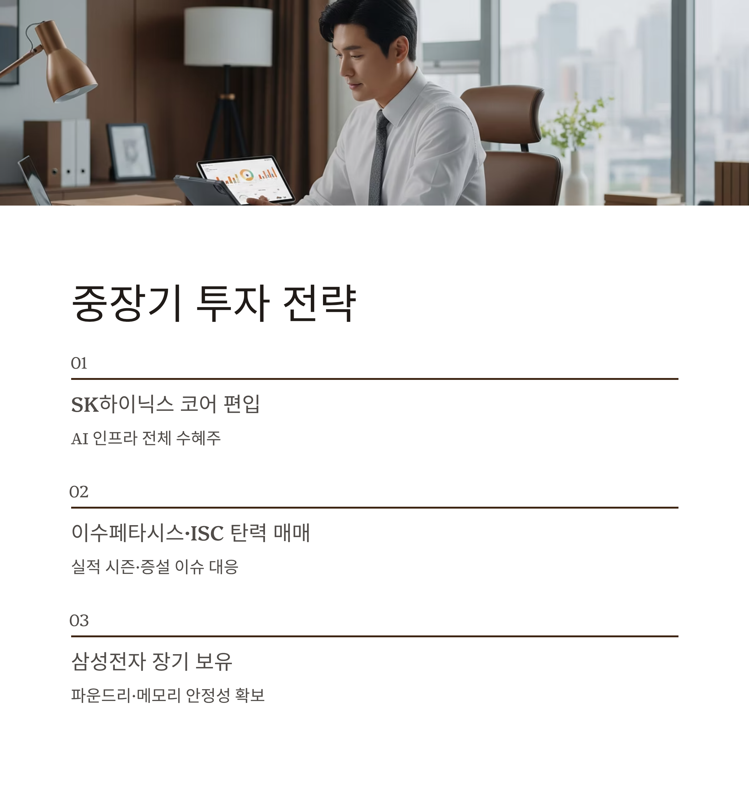 파운드리·메모리 양쪽 포지션을 모두 갖고 있어, 구글 TPU뿐 아니라 AI 전체 시장 성장의 간접 수혜주이자 안정적 투자처입니다.