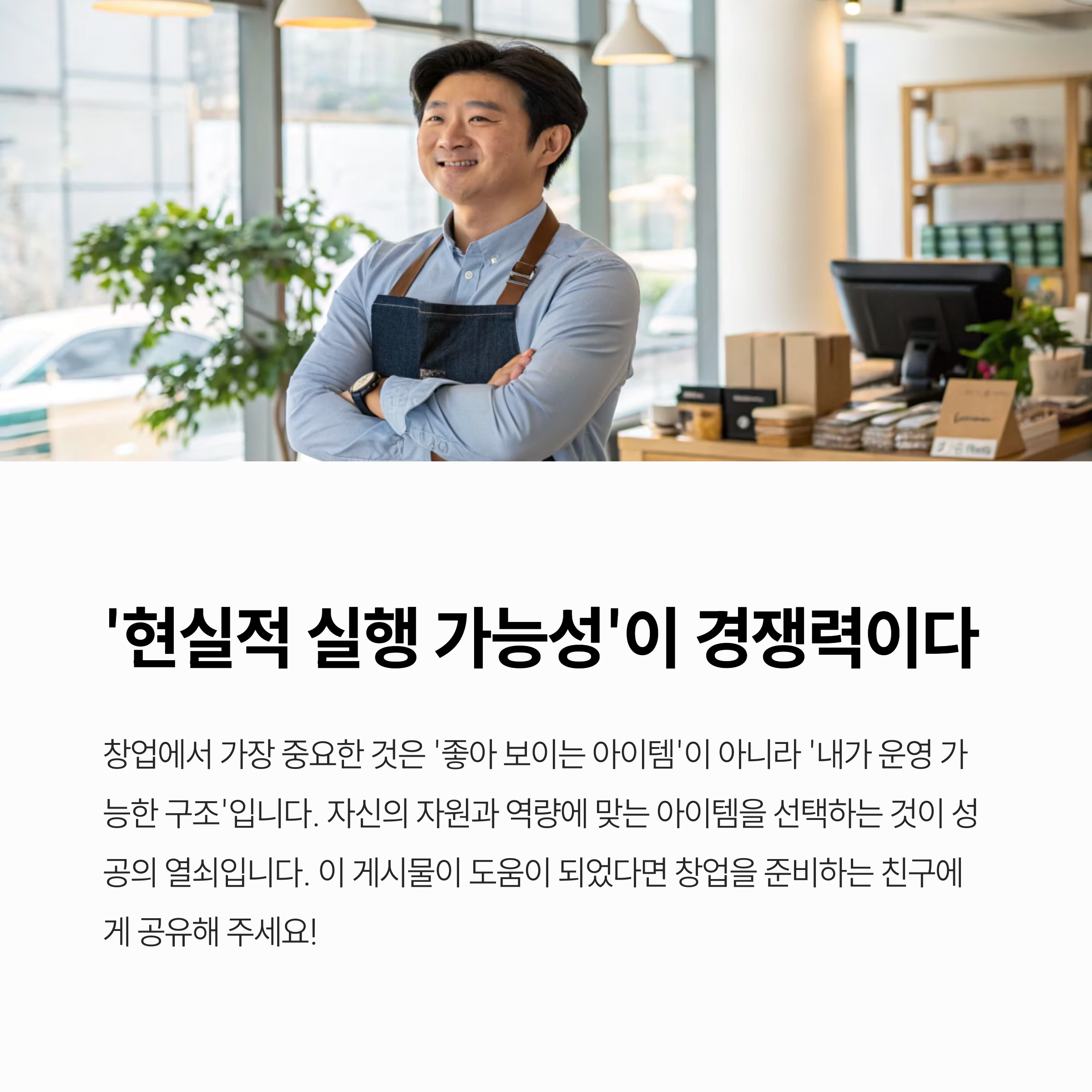 창업 아이템 선택은 단순히 좋은 제품을 고르는 일이 아닙니다. 수요, 실행력, 구조, 운영 지속성을 모두 고려해야 실패 확률을 줄일 수 있습니다. 실수는 누구나 할 수 있지만, 미리 알면 피할 수 있는 실수도 있습니다. 오늘 정리한 3가지를 기억하고, 아이템 선정부터 전략적으로 접근해보세요.