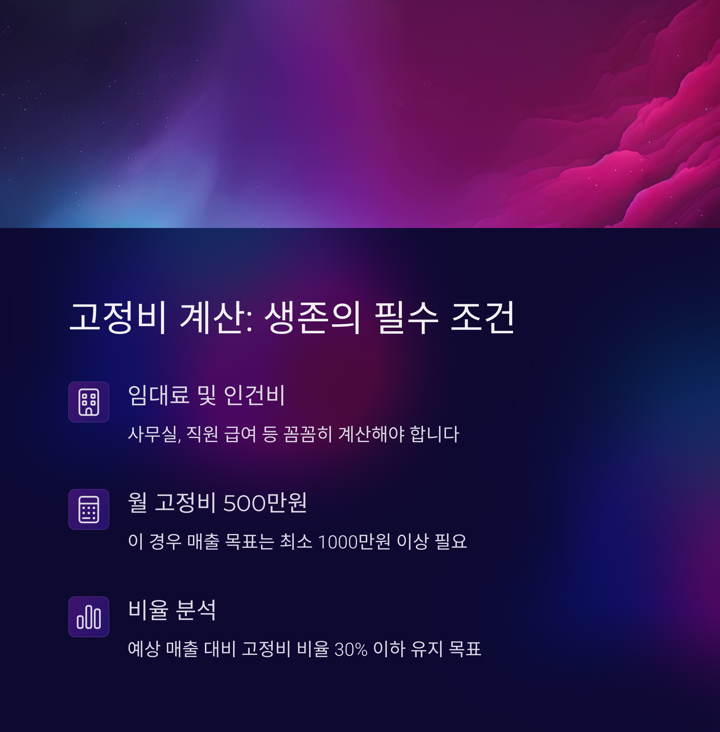 | 생존 가능 월수 계산 필수 | 현실 기반 목표 설정 가능 | 세무 교육 또는 전문가 상담 추천 |