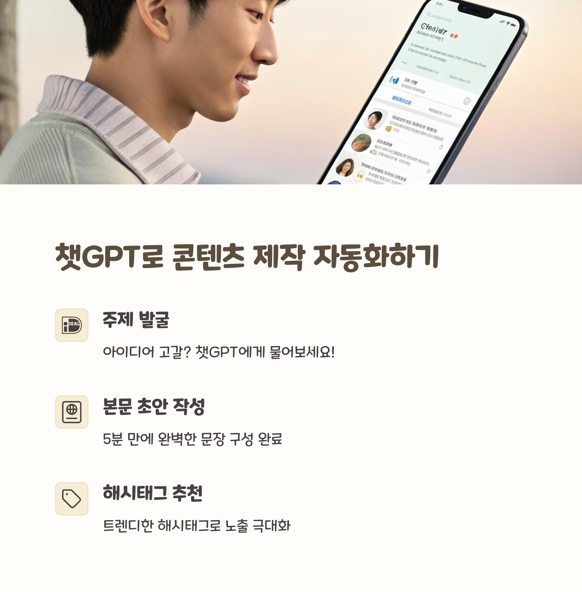 | 챗GPT 활용 | 콘텐츠 주제 아이디어 생성, 목차 구성, 포스트 작성, 해시태그 추천 등 자동화 가능 |