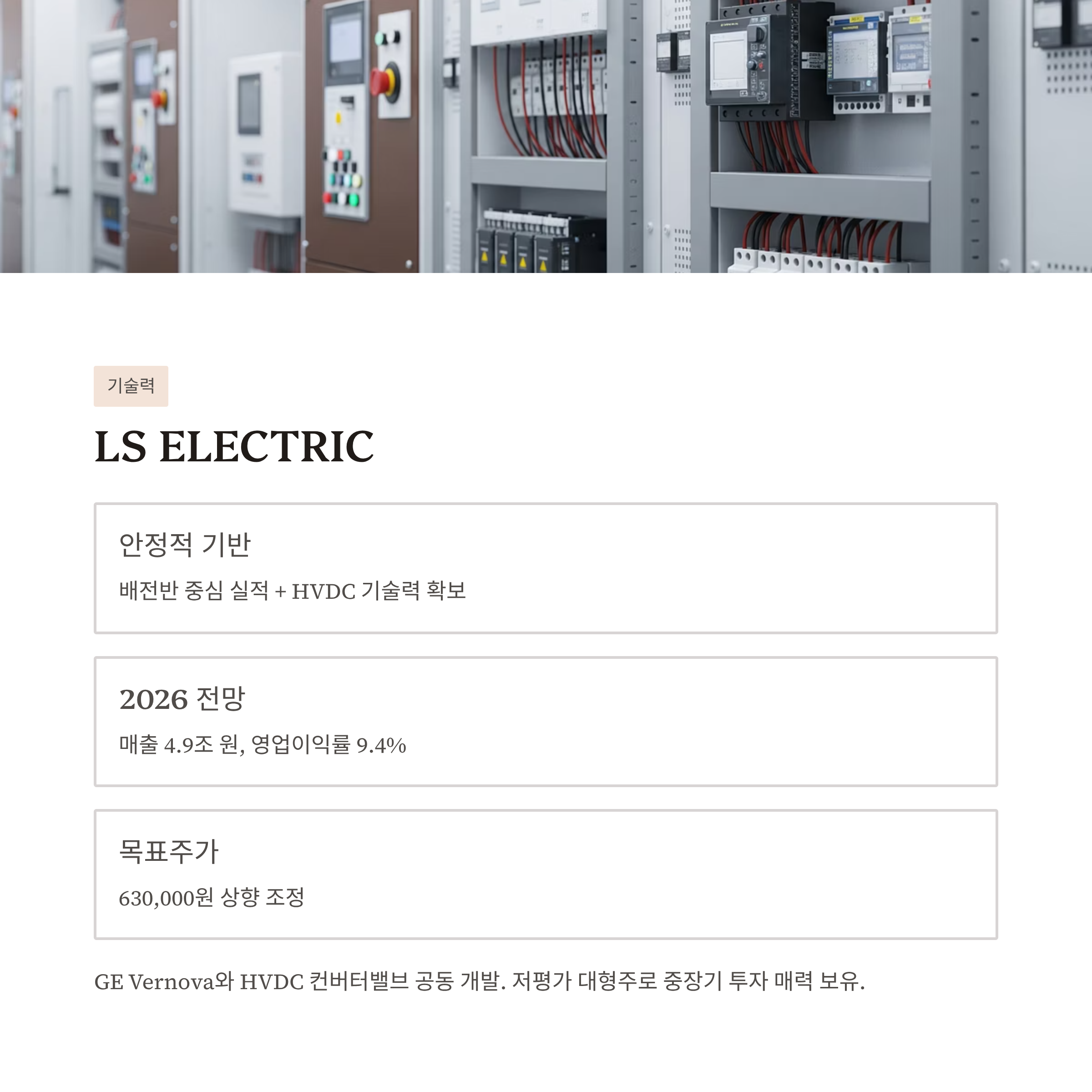 LS ELECTRIC은 기존 배전반 중심의 안정적 실적 기반에, HVDC 기술력까지 더하며 새로운 성장 축을 형성하고 있습니다.