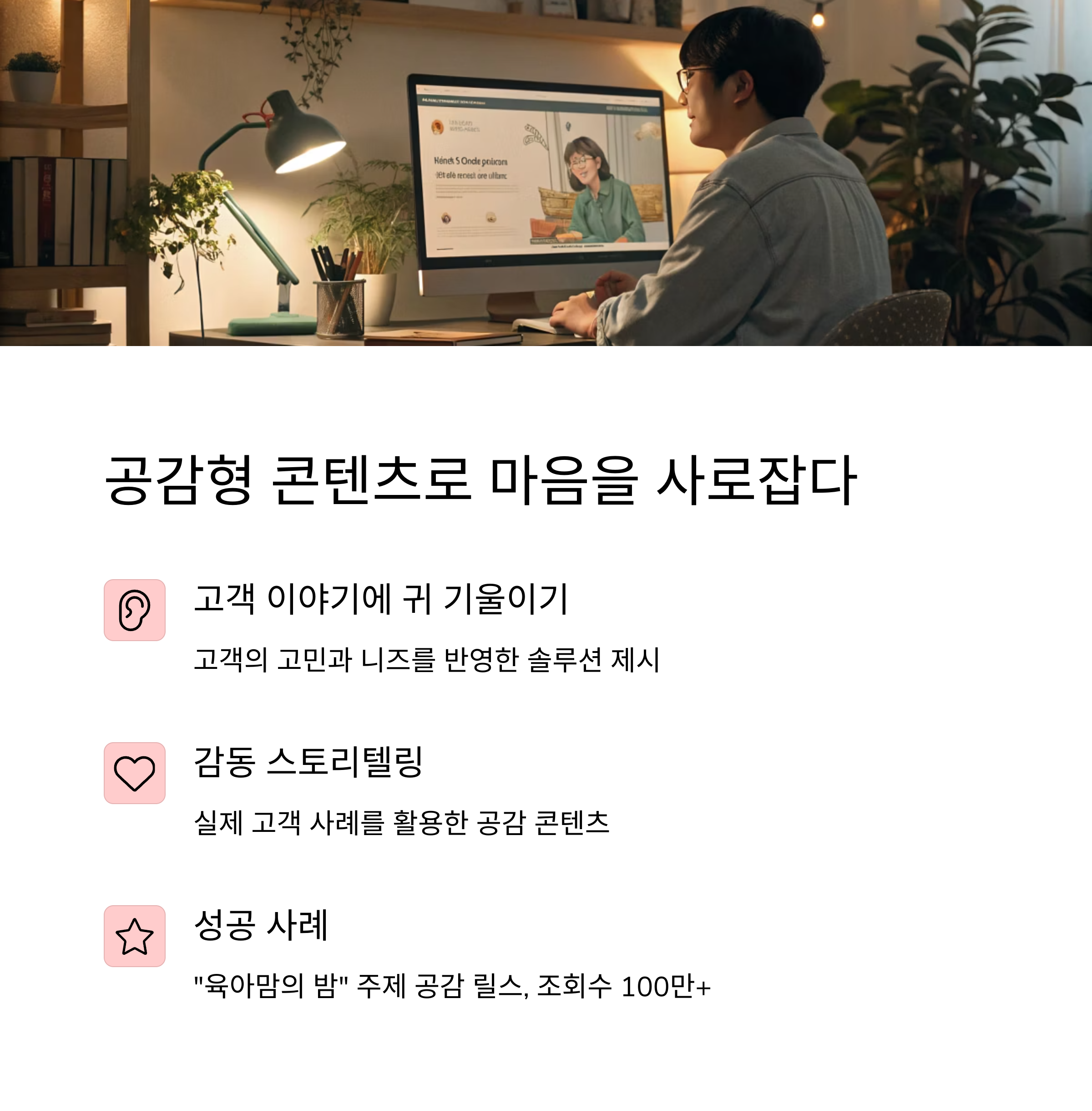 | DM, 설문조사, 실시간 반응 활용 | 공감형 콘텐츠와 진심 담긴 피드백 | 소속감이 생기면 자발적 홍보로 이어짐 |