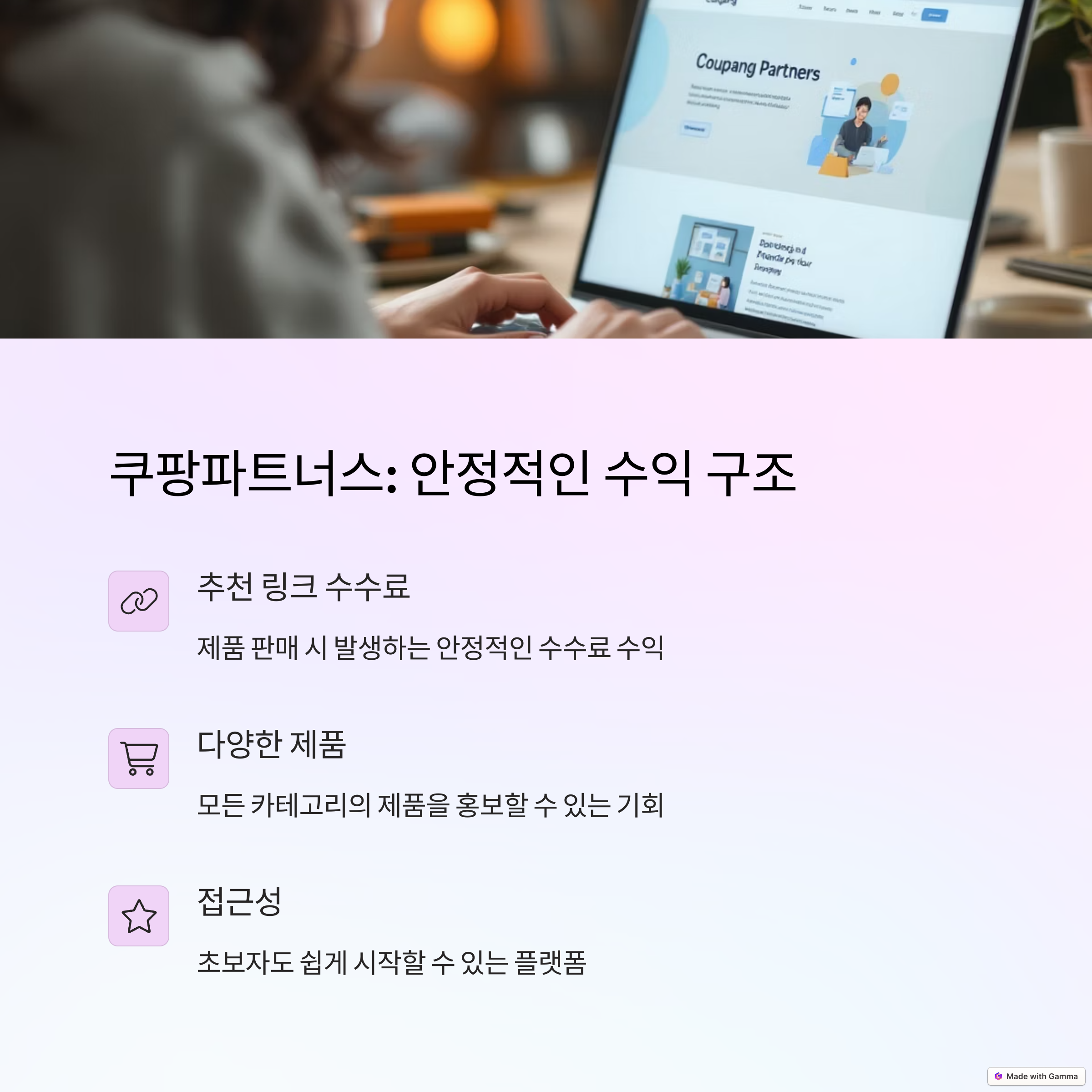 쿠팡파트너스는 쿠팡이라는 대형 온라인 쇼핑몰의 파트너 프로그램입니다. 이 프로그램을 통해 사용자는 추천 링크를 생성하고, 이를 통해 상품을 소개하여 수익을 창출할 수 있습니다. 중요한 점은, 쿠팡파트너스는 상품 구매에 대한 수수료를 제공하며, 이 수수료는 보통 1%에서 10%까지 다양합니다. 예를 들어, 5,000원짜리 제품을 판매하면, 5%의 수수료를 받는다면 약 250원을 수익으로 얻을 수 있습니다. 이처럼 쿠팡파트너스는 추천형 리퍼럴 링크를 기반으로 운영되며, 정해진 수수료에 따라 수익을 올릴 수 있습니다.