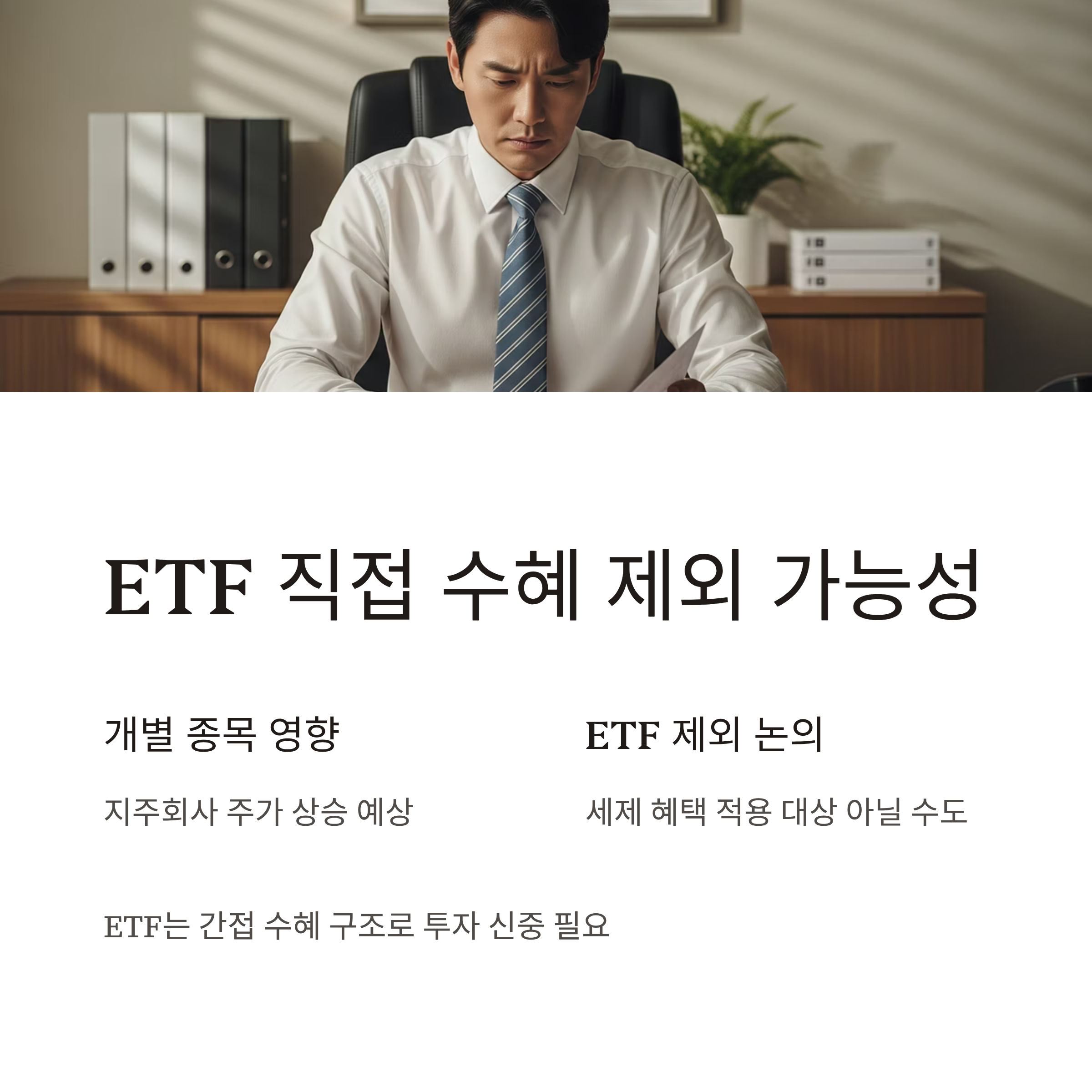 즉, ETF에 포함된 개별 지주사들이 주가 상승으로 반응할 수는 있지만, ETF 자체에 세제 혜택이 주어지는 건 아니라는 이야기입니다. 투자자 입장에선 제도 반영으로 인한 간접 수혜를 기대하는 구조인 것이죠.