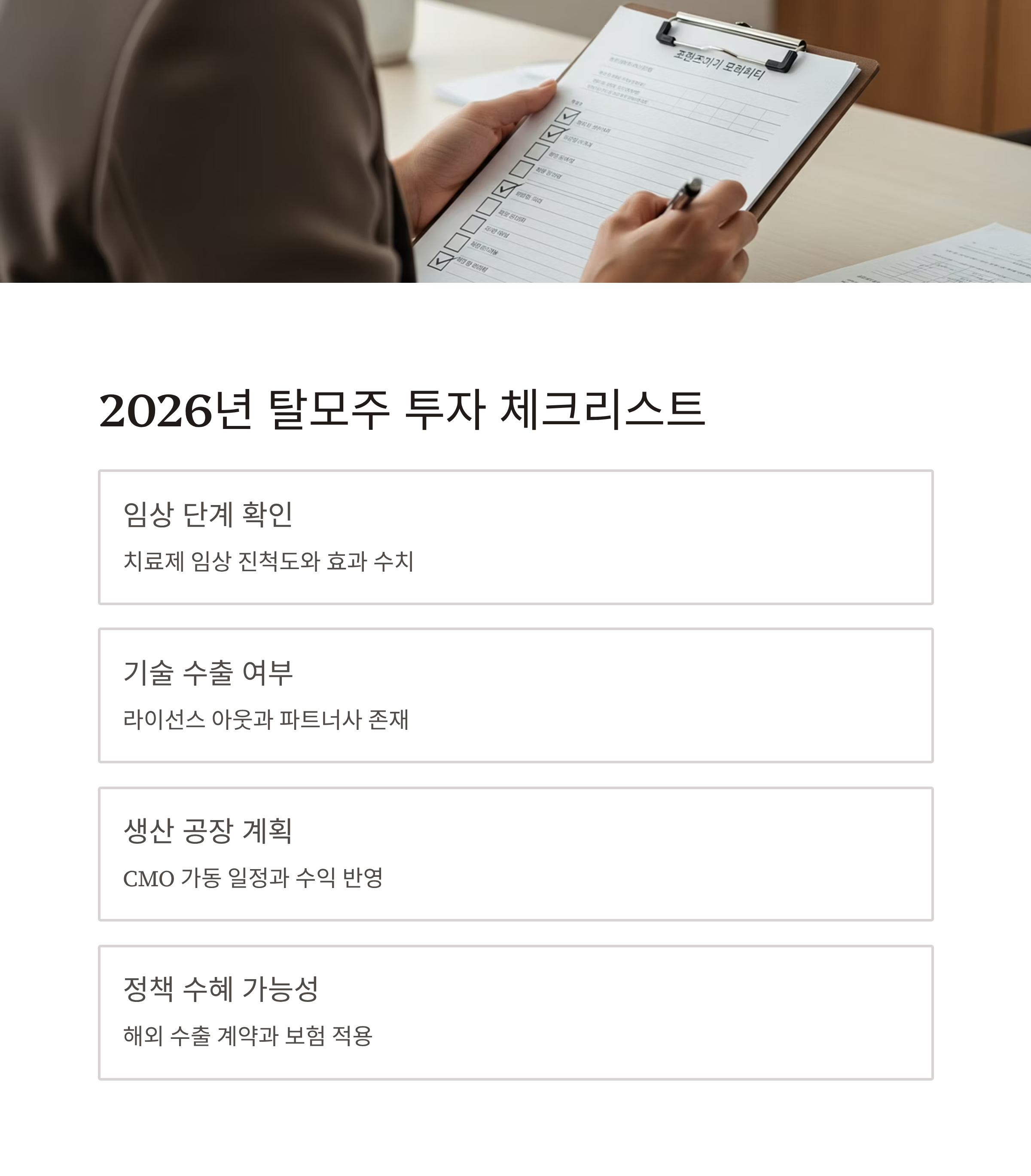 체크리스트 (2026년 탈모주 투자 전 확인)
