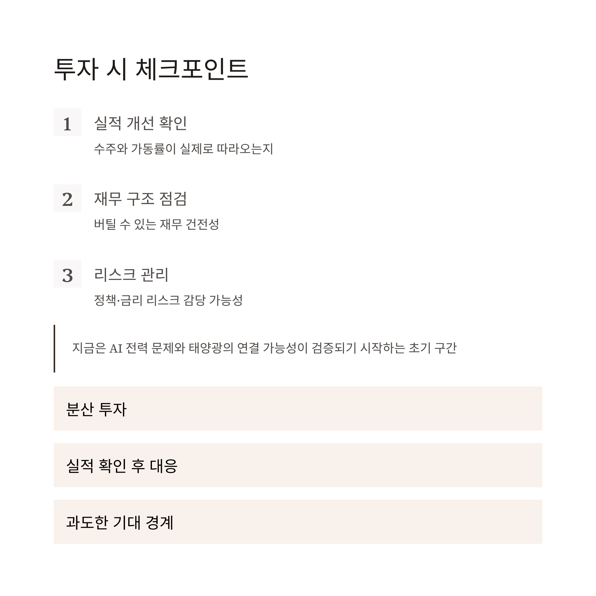 다만 태양광 단일 테마로 접근하면 기대와 현실의 괴리가 생길 수 있습니다.