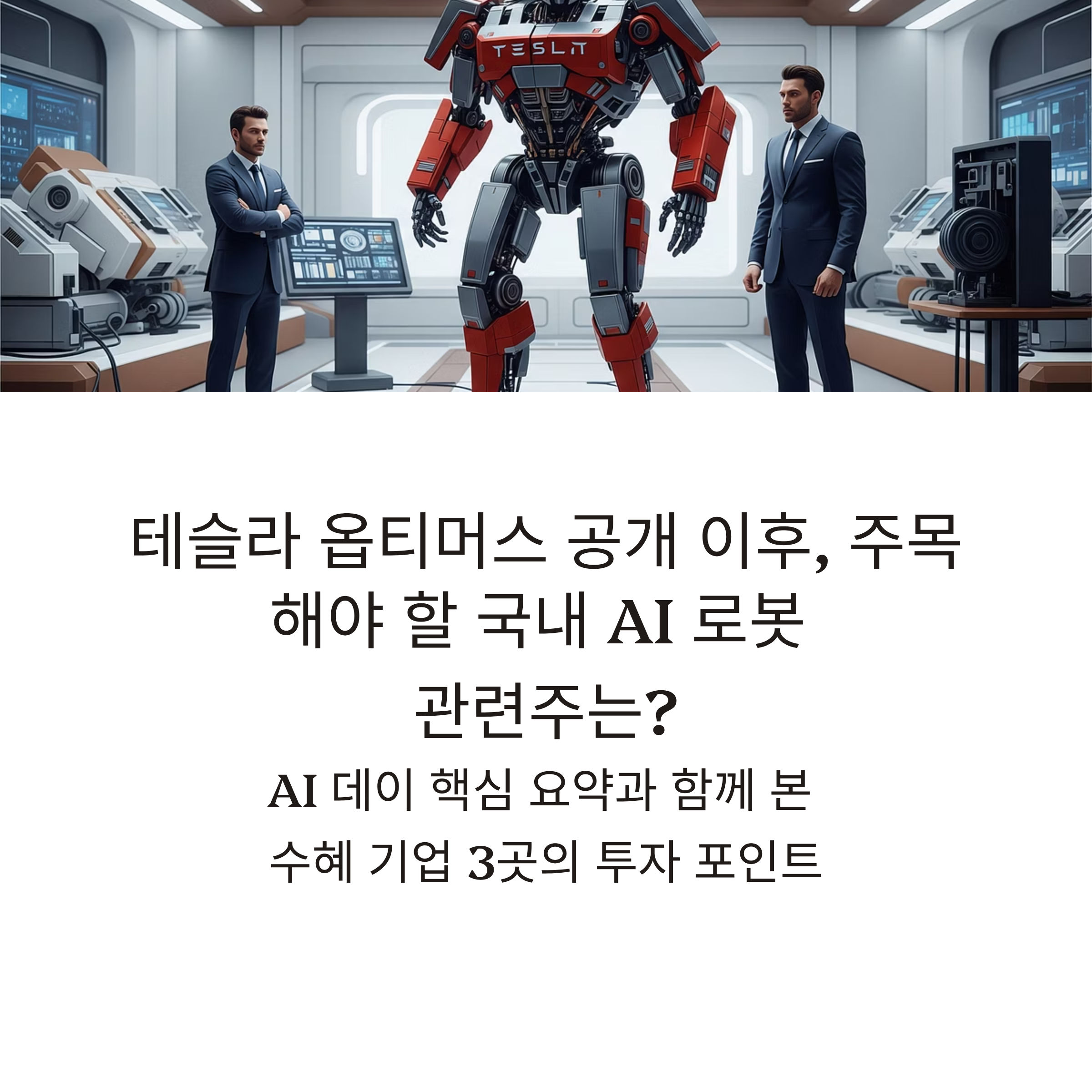 테슬라가 공개한 휴머노이드 로봇 ‘옵티머스’는 더 이상 공상과학이 아닙니다. AI가 현실 공간을 인식하고 판단하는 시대, 옵티머스의 기술 진화는 곧 국내 로봇 산업에도 파장을 일으킬 수 있는 신호탄입니다. 이번 AI Day 발표 내용을 중심으로 옵티머스 관련 핵심 수혜주 3곳을 분석해 투자 기회를 짚어봅니다.