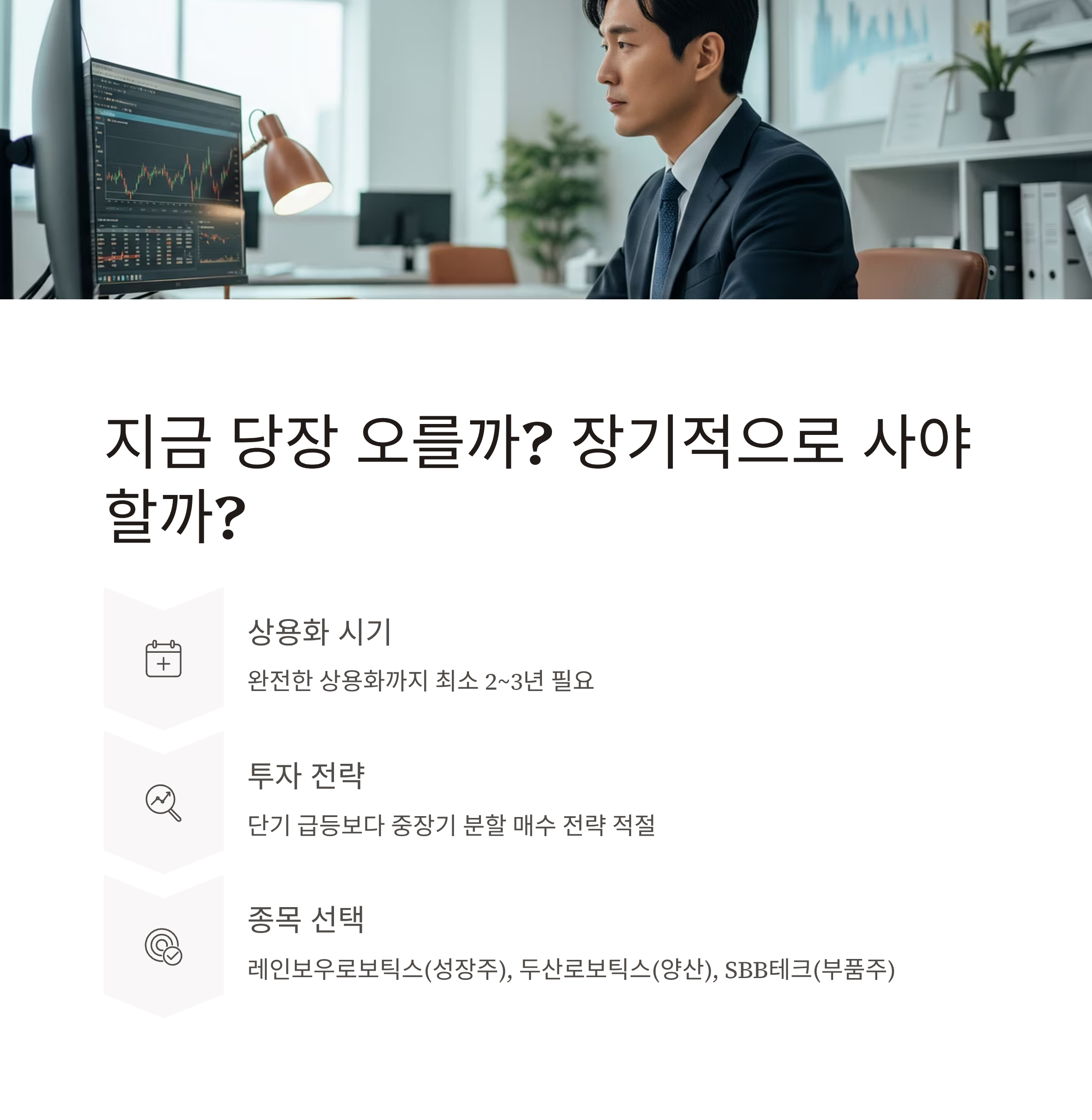 단기 급등보다는 중장기 분할 매수 전략이 적절합니다. 특히 기술 내재화된 종목일수록 상용화가 현실화될 때 재평가 폭이 크기 때문입니다.