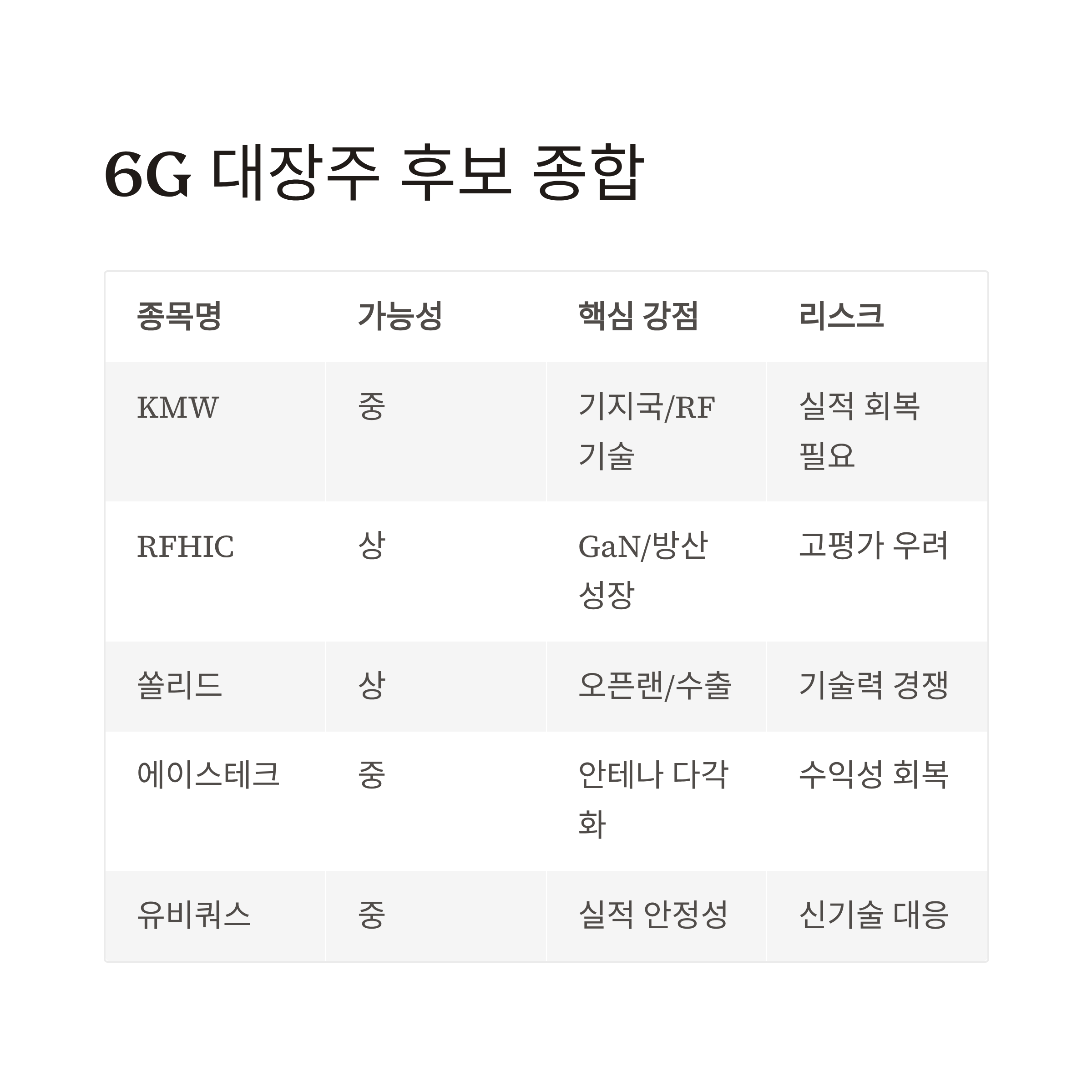 종합 정리: 6G 시대의 통신장비 대장주 후보