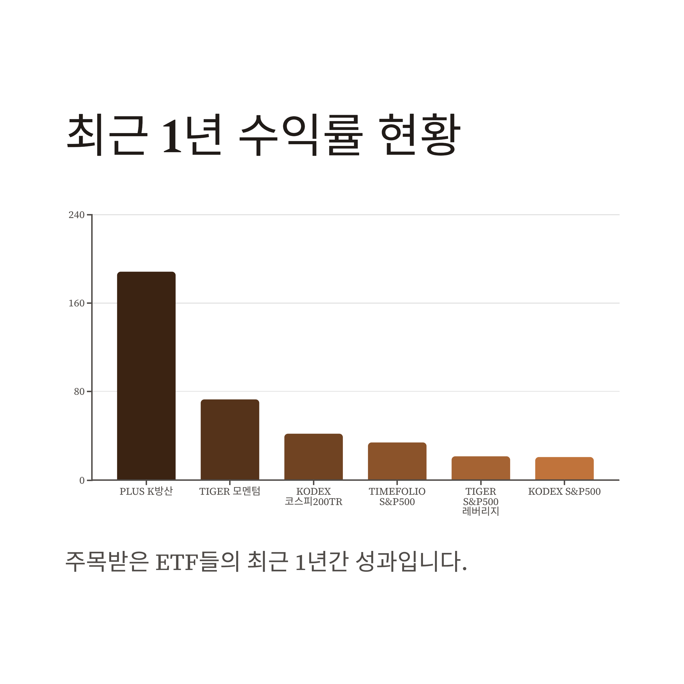 아래 ETF들은 최근 1년 동안 주목받은 성과를 보여준 상품들입니다.