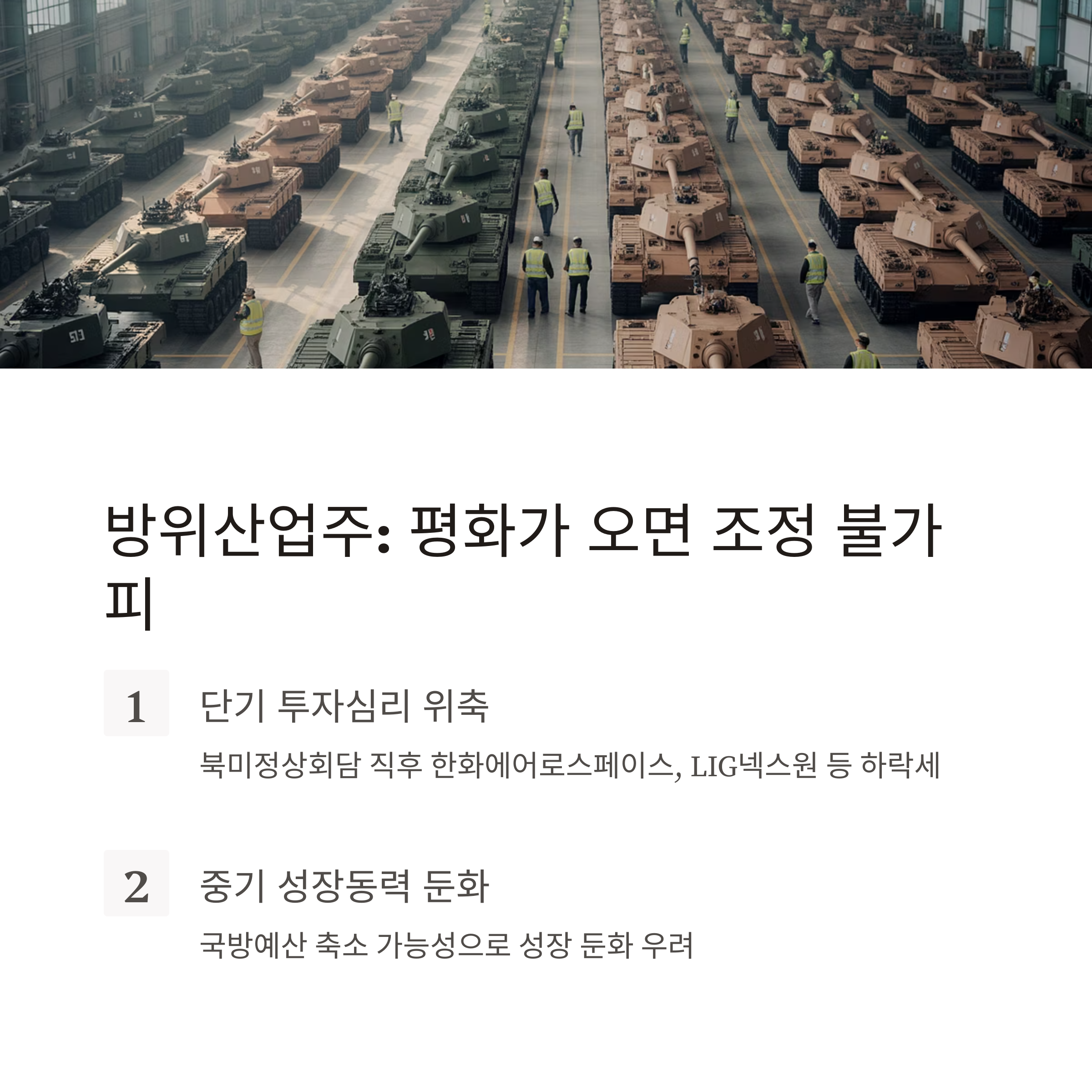 방위산업주: 평화가 오면 조정받는 대표 업종