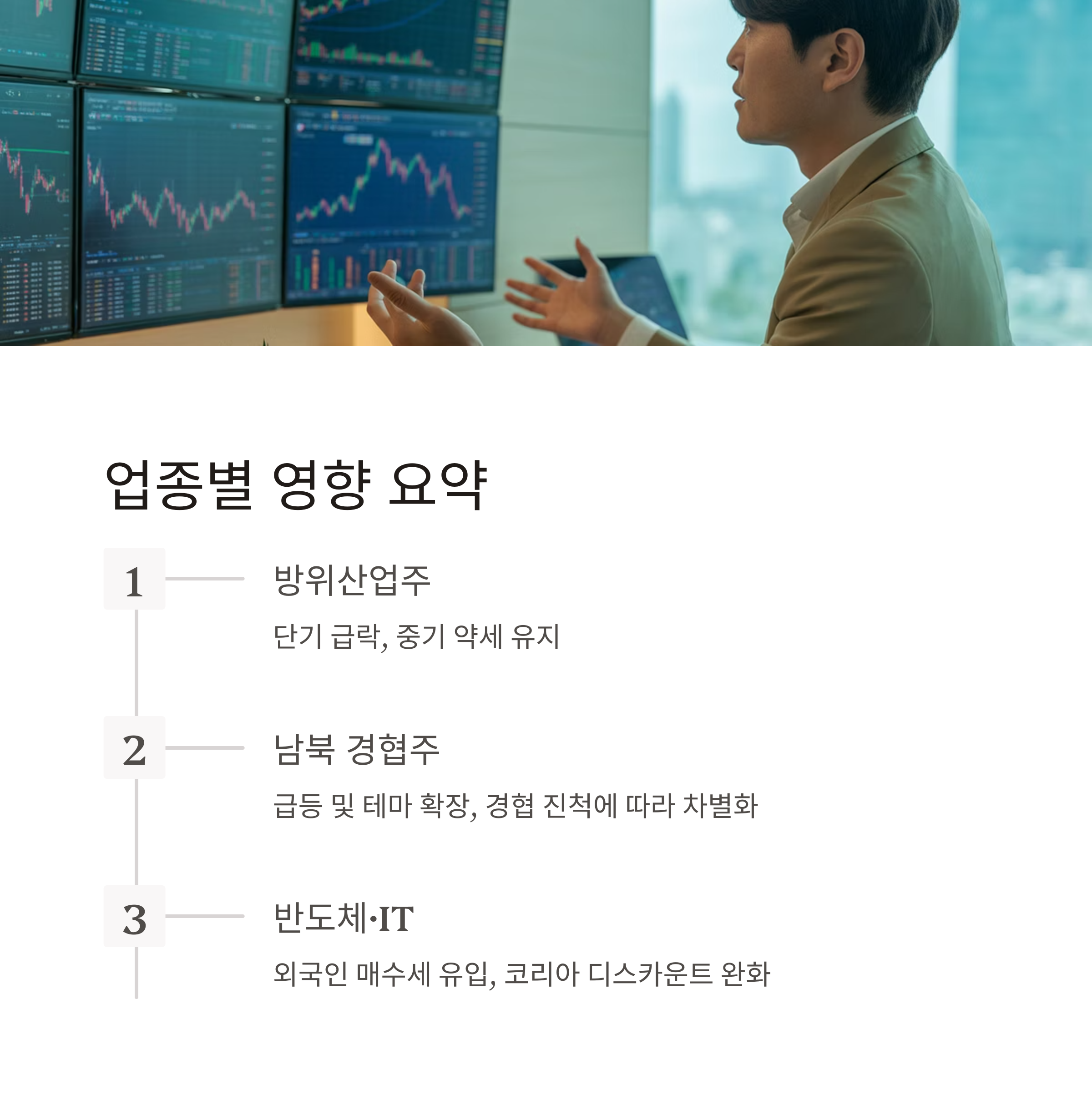 한반도 긴장 완화, 주식시장에 어떤 영향을 미칠까? 업종별로 정리해드립니다