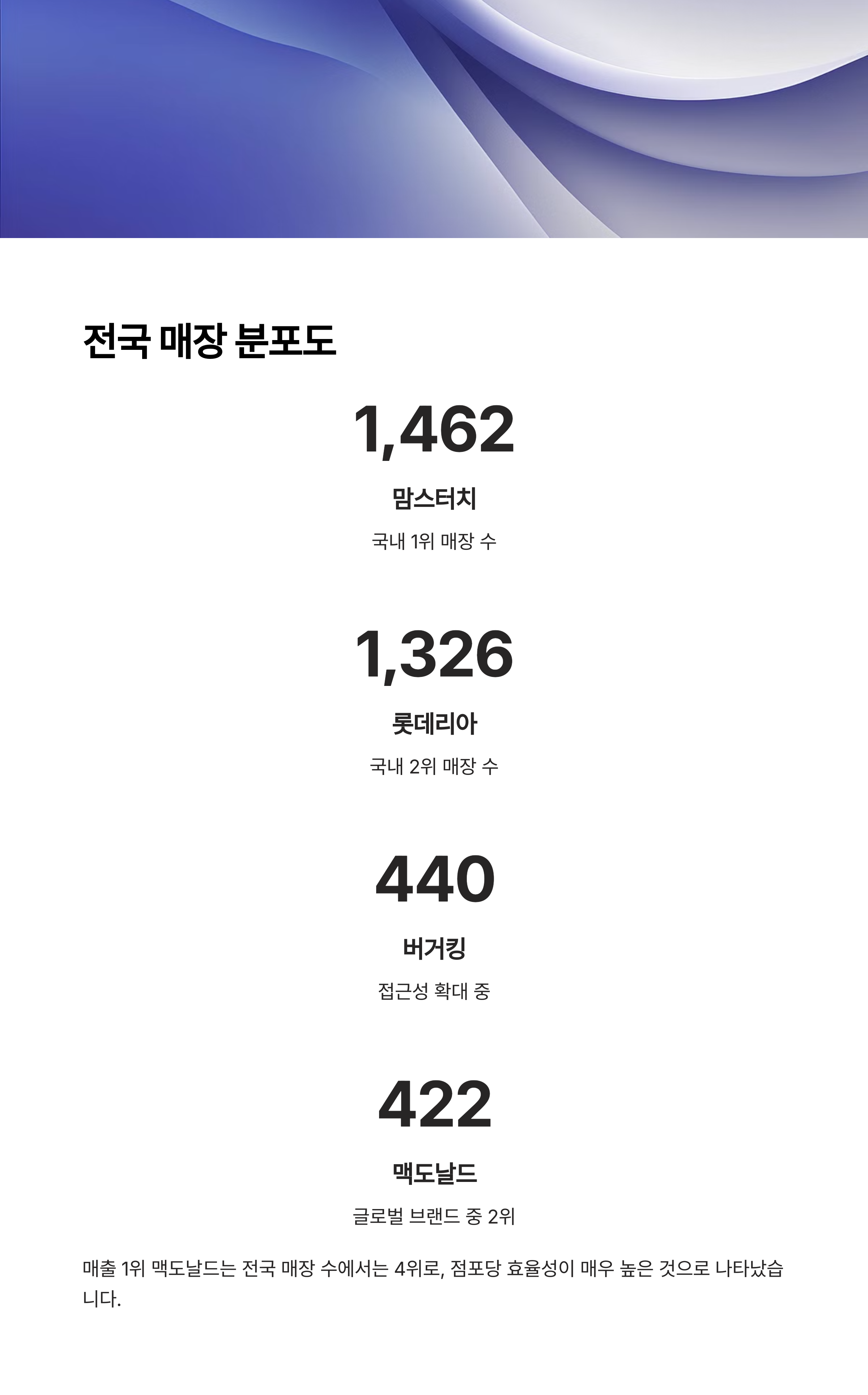 | Q. 왜 맥도날드가 국내 시장에서 1위를 유지하고 있나요? |