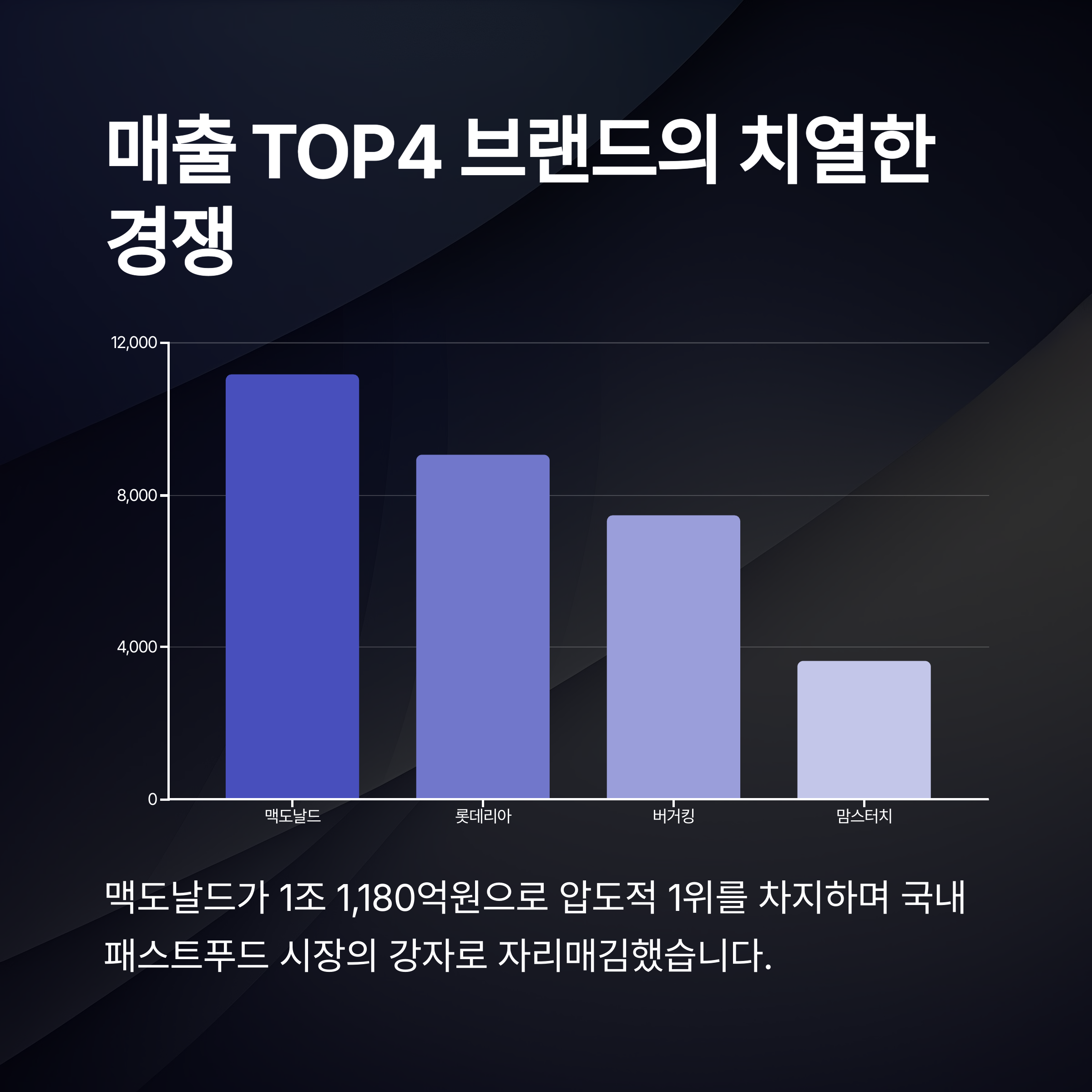 맥도날드는 높은 브랜드 인지도와 혁신적인 메뉴로 국내 1위를 유지하고 있습니다.