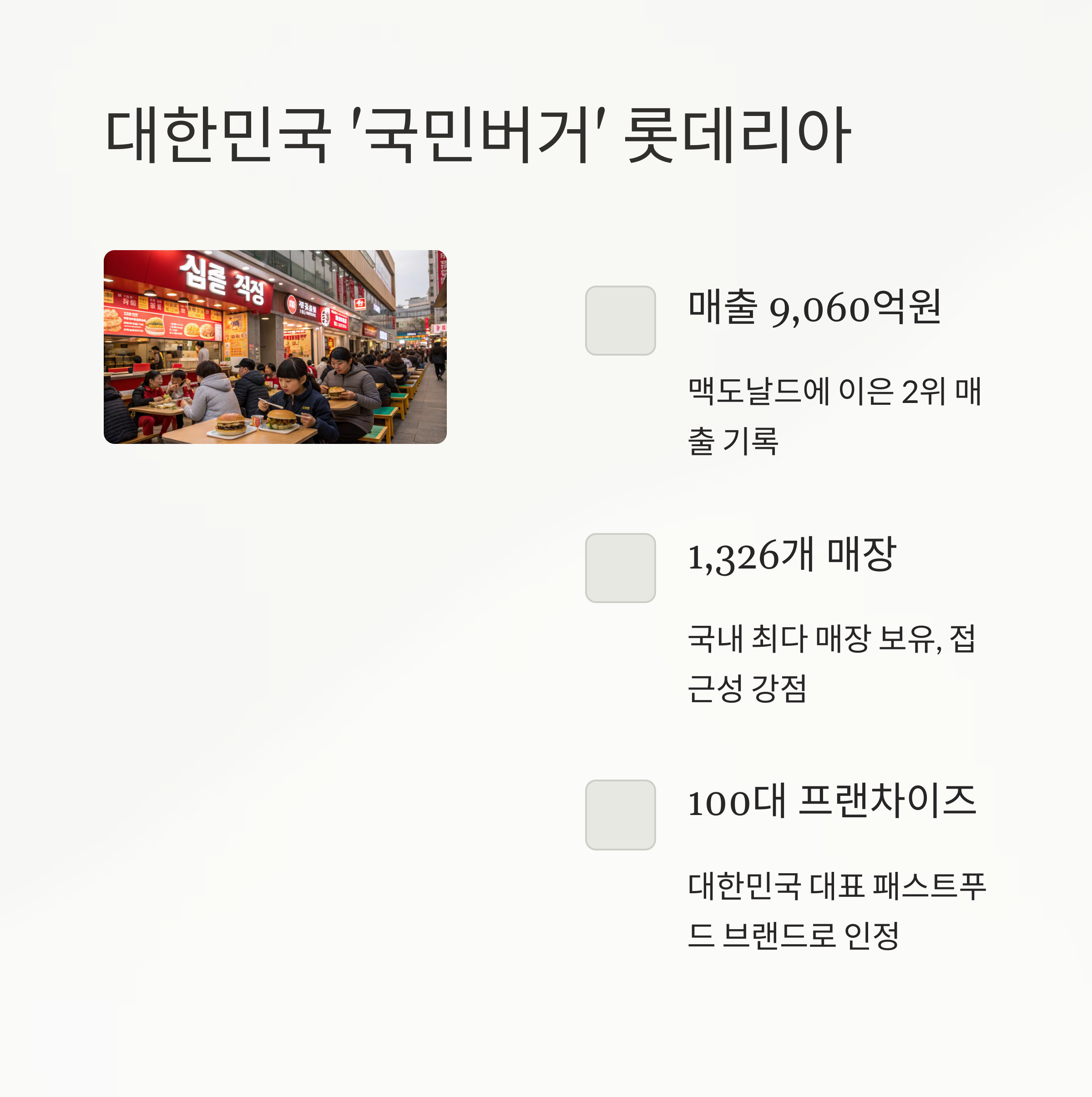 2. 롯데리아는 국내 최대 매장 수로 안정적인 점포 운영 가능성을 제공합니다.
