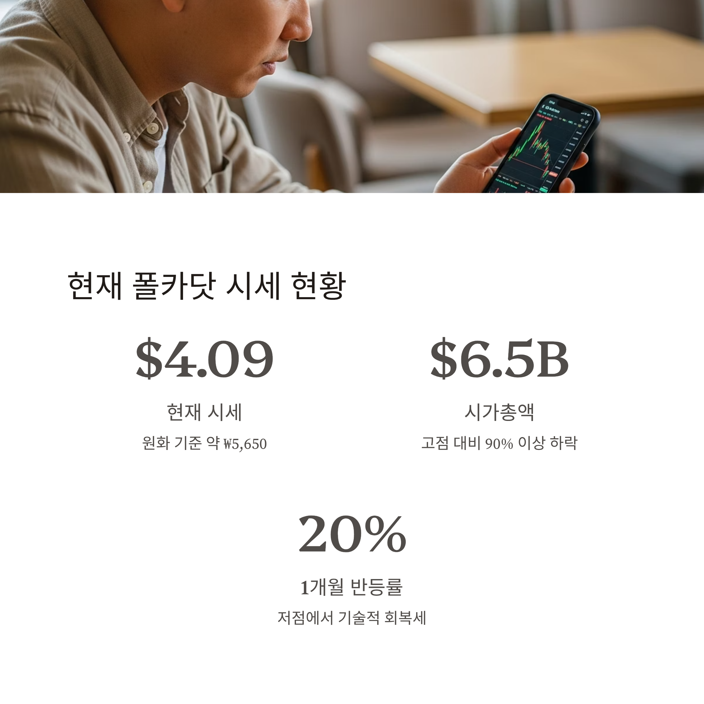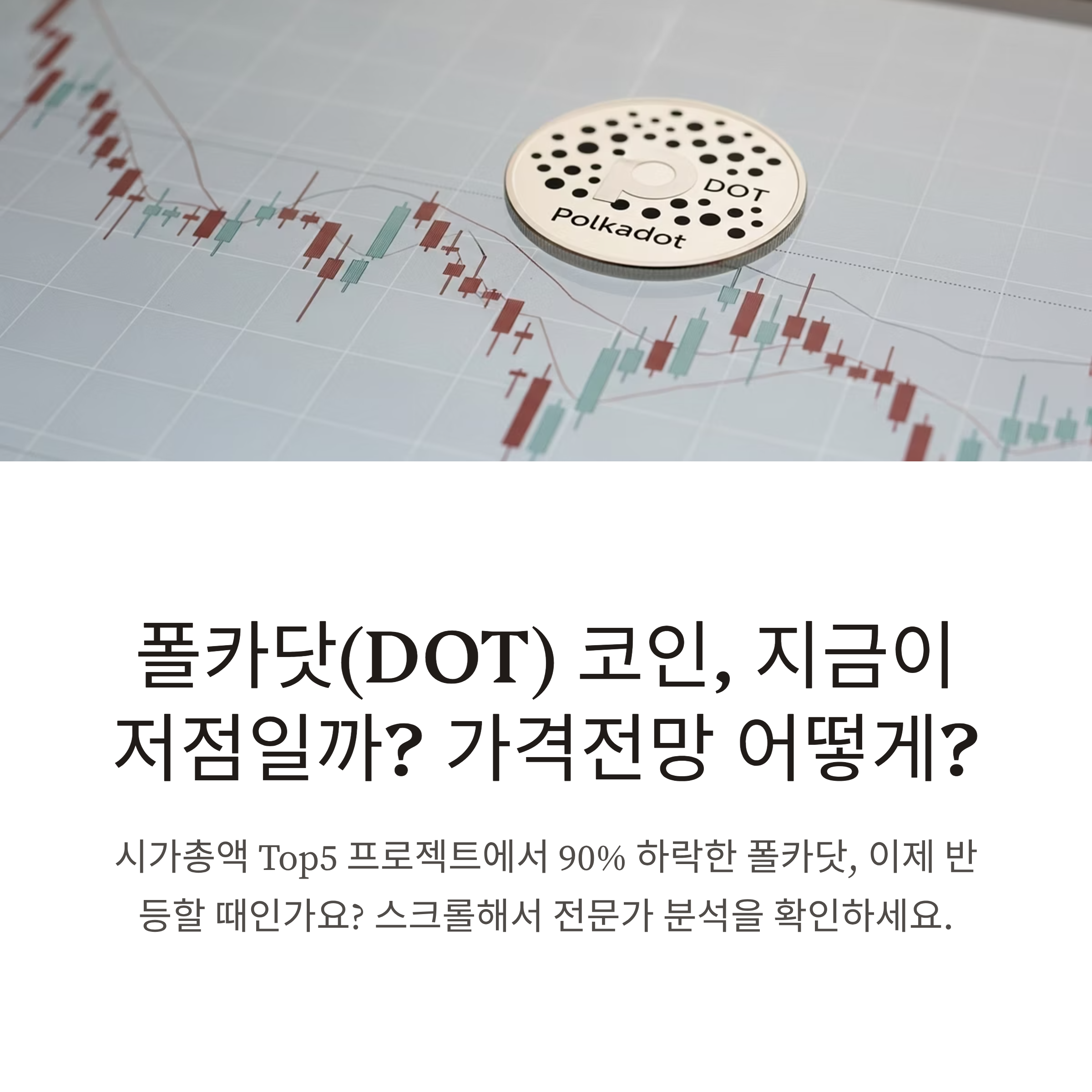 폴카닷(DOT)은 한때 시가총액 Top5 안에 들던 강력한 플랫폼 프로젝트였습니다. 그러나 최근 몇 년간 실사용 부진과 내러티브 약화로 가격이 고점 대비 90% 이상 하락한 상태입니다. 현재는 과매도 국면에서 저점을 다지고 있는 모습으로, 추세 전환 가능성을 두고 많은 투자자들의 관심이 집중되고 있습니다. 이번 글에서는 폴카닷의 현재 시세와 기술 분석, 펀더멘털 지표, 전문가들의 전망을 종합하여 현시점의 매수 타이밍과 장기 전략에 대해 살펴보겠습니다.