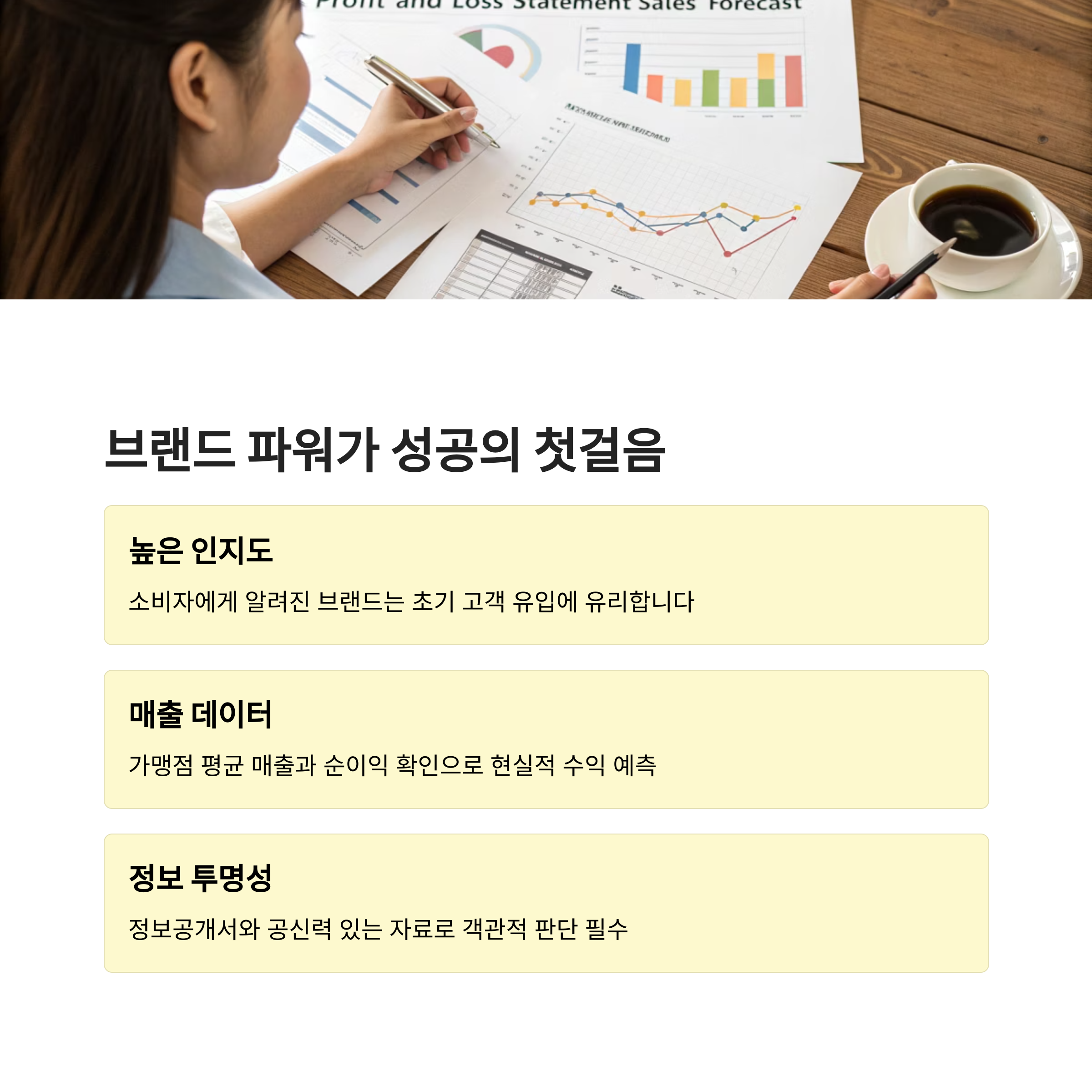프랜차이즈 창업의 성공 여부는 결국 브랜드 선정 과정에서 얼마나 데이터를 신뢰하고 활용하는가에 달려 있습니다.