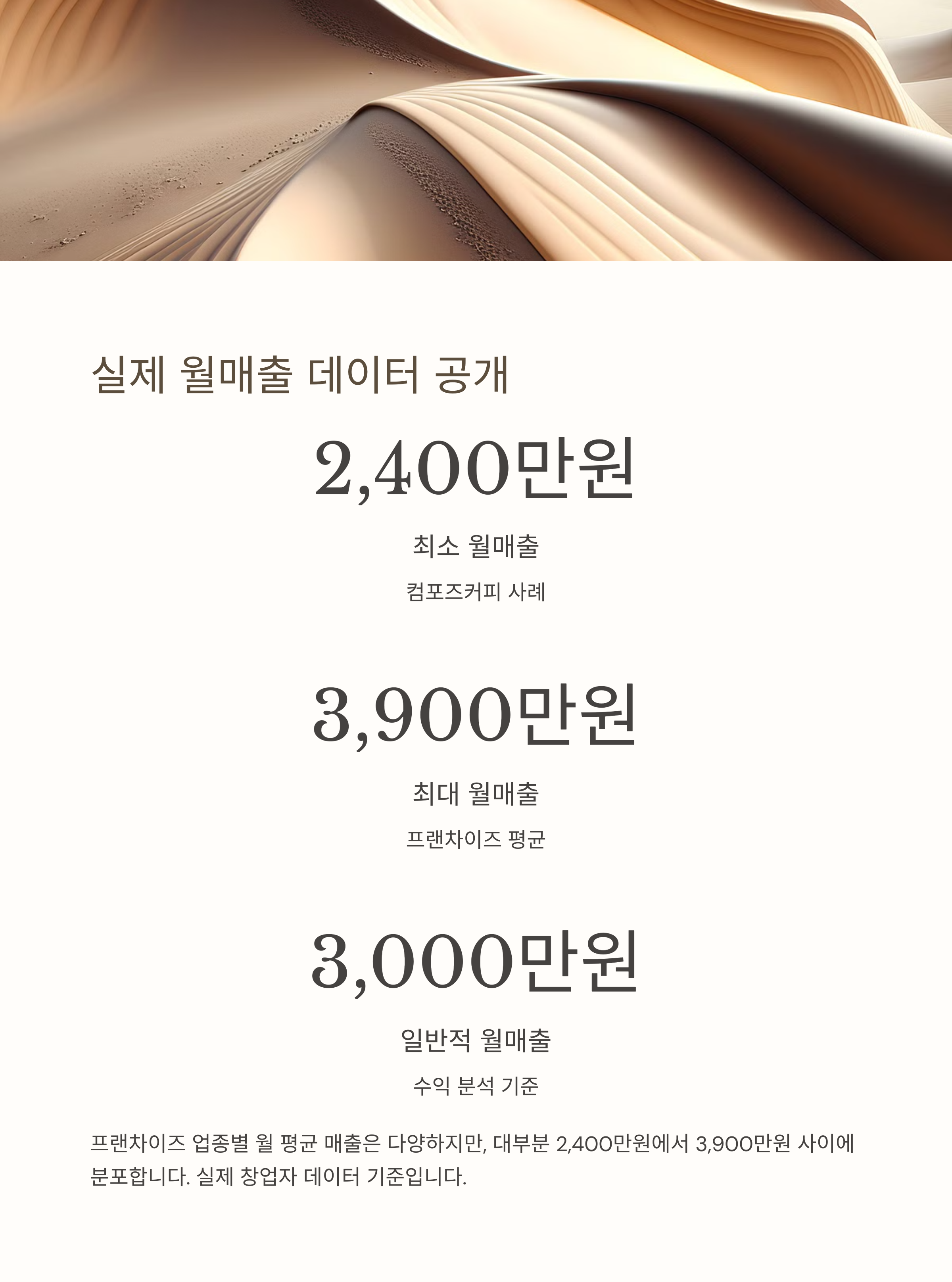 | 프랜차이즈 평균 매출 | 2,400만 원 ~ 3,900만 원 |