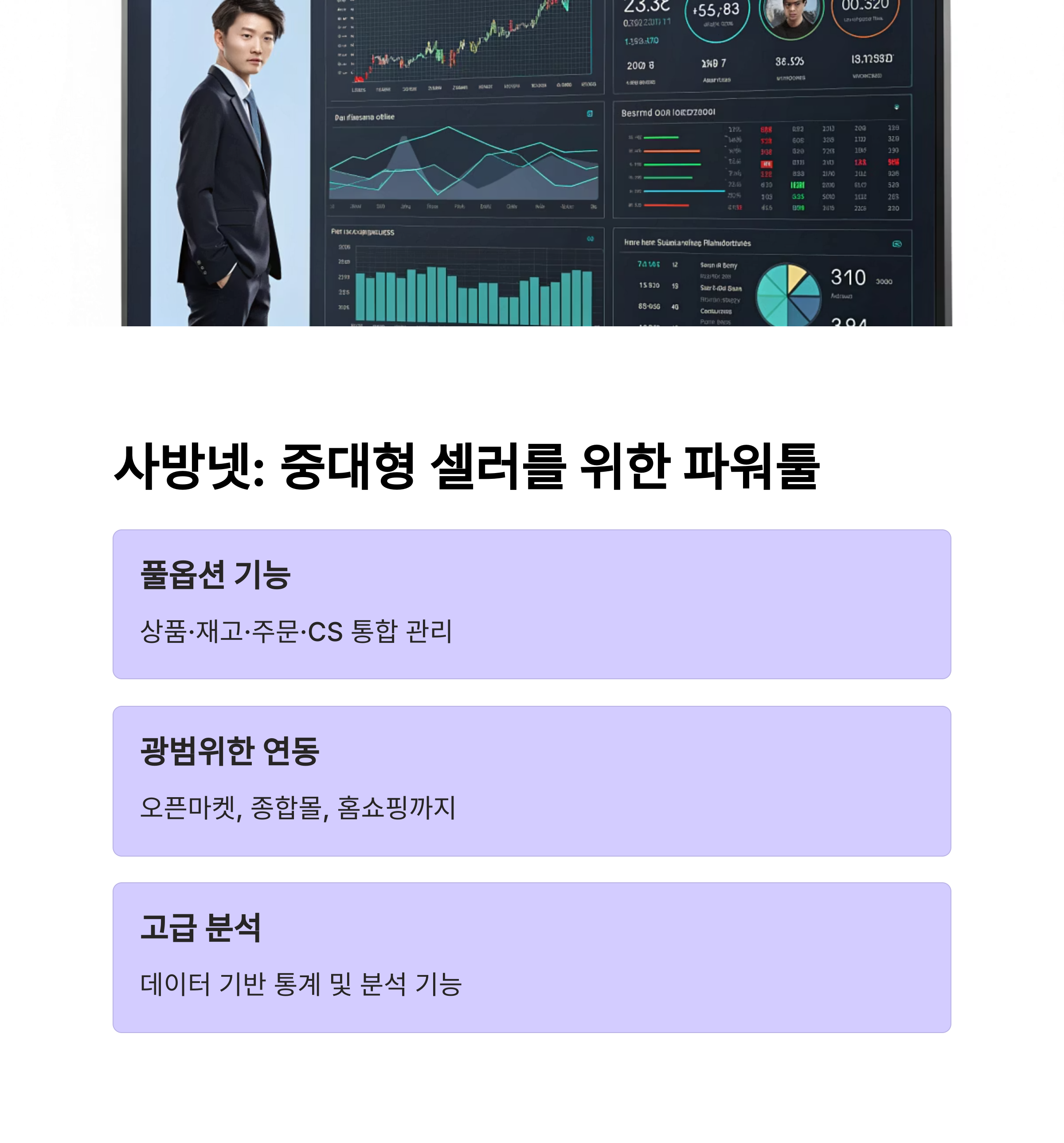 사방넷 대형 마켓과의 연동 강점, 고도화된 설정 지원