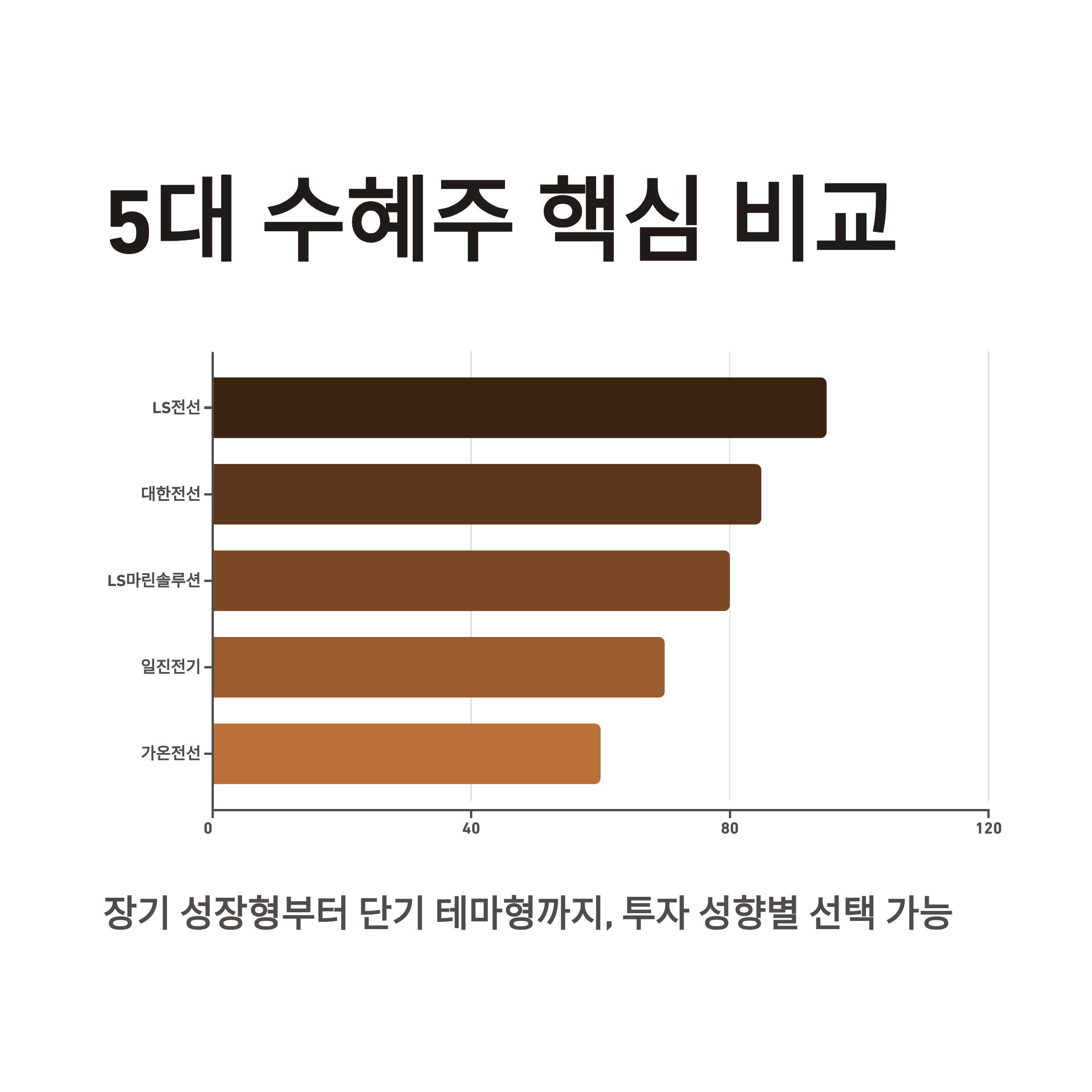 | LS전선 | 해저/HVDC/광통신 케이블 | 글로벌 수주, 버스덕트, 수직계열화 | 원자재·글로벌 프로젝트 지연 | 대형장기 성장형 |