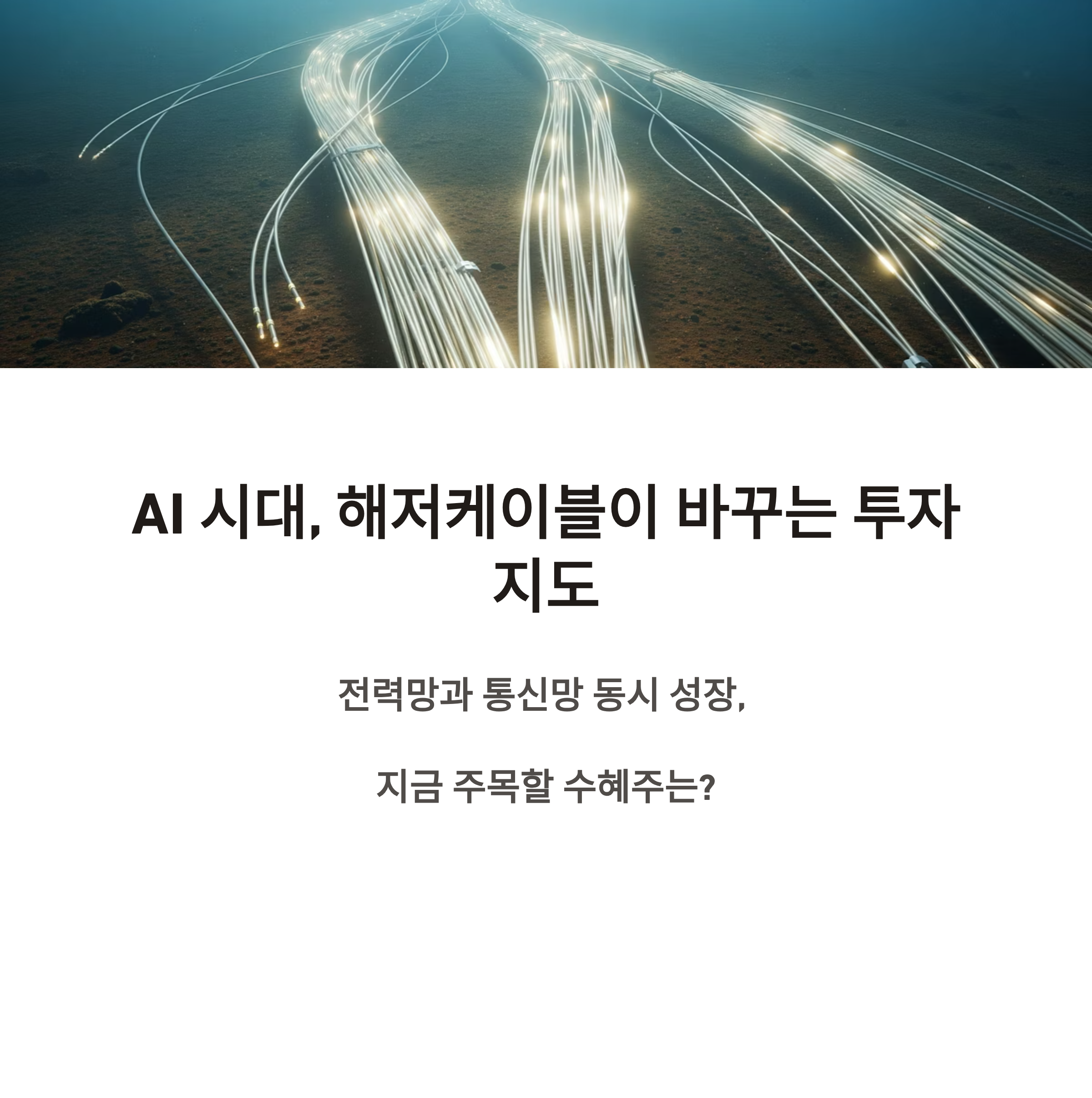 인공지능(AI) 데이터센터의 확산과 해상풍력·전력망 고도화가 본격화되면서, 해저케이블과 초고압 전력케이블(HVDC), 그리고 이를 둘러싼 전선 산업이 동시에 성장하고 있습니다. 특히 AI의 ‘전력 괴물’이라는 수요 특성과 글로벌 통신량의 급증이 맞물려, 전력과 통신 케이블 수요가 구조적으로 폭증하고 있죠. 이 글에서는 해저케이블·전선·AI 데이터센터 세 가지 키워드의 교집합에 놓인 국내 대표 수혜 기업들을 비교 분석하고, 투자자 입장에서 어떤 전략이 유리한지 살펴봅니다.